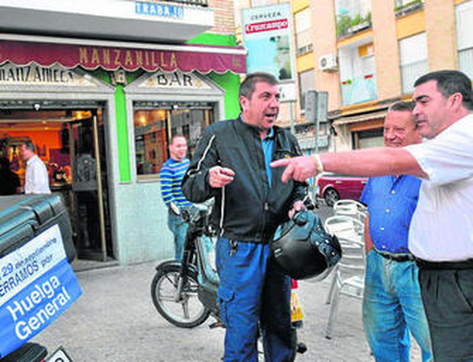 "¡Mira que ponerle Trabajo a la calle!", dice un cliente del bar Manzanilla. Manolo Távora, 40 años, regenta un taller de lavado manual de coches en esta calle. "Es el tercero que lavo en la mañana". Está dejando el Nissan como los chorros del oro. Tiene un empleado, Javier Tierno, 31 años. Lo de los piquetes le suena a los polígonos. "Lo bueno es que está la calle más tranquila. Vivo en Pagés del Corro y hoy no hay doble fila". Trabajo está rodeada de calles de nombres virtuosos: Lealtad, Prosperidad, Constancia, Voluntad. "La voluntad que hay que tener para ir a trabajar", dice el cliente del Manzanilla.