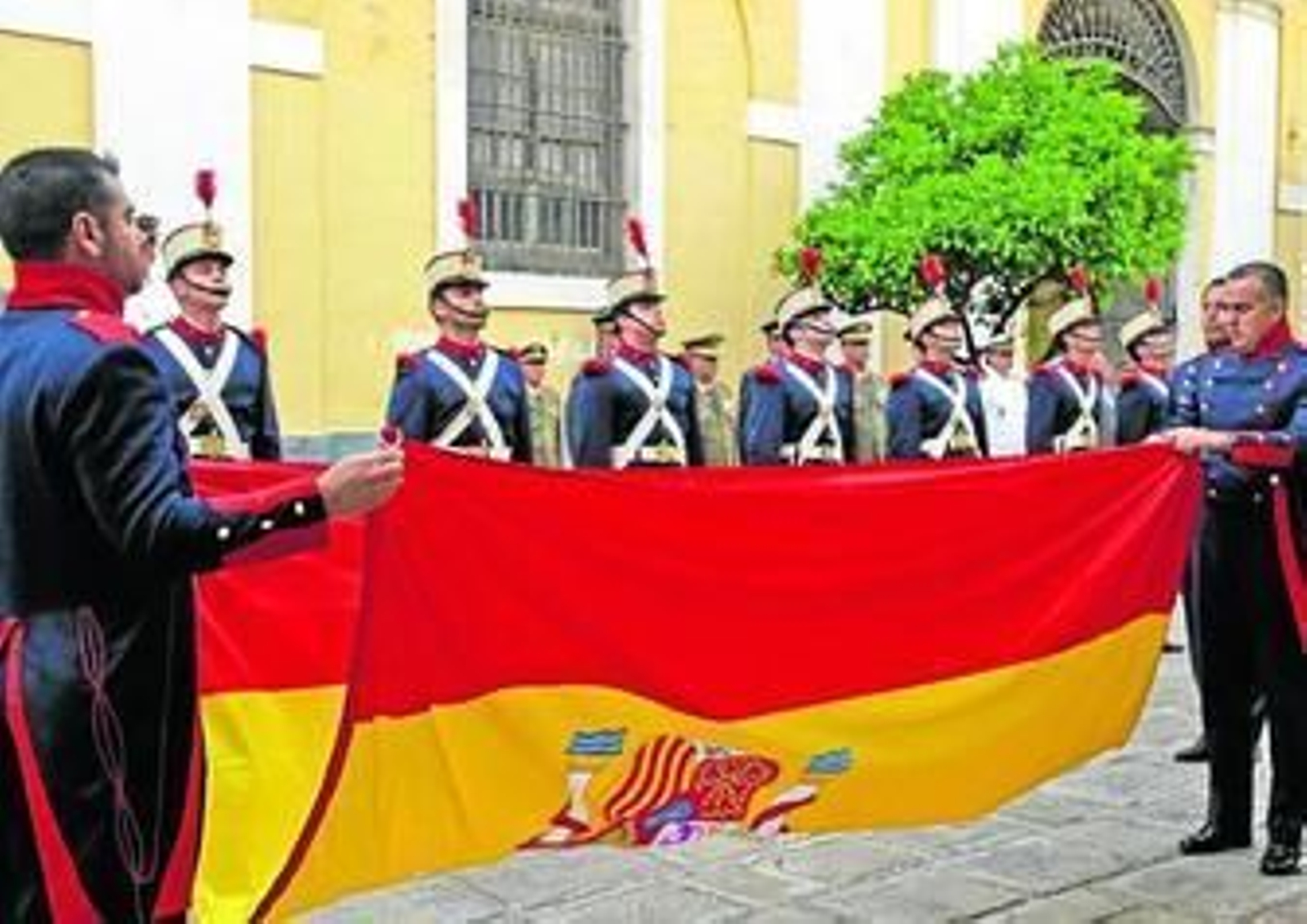 El acto, presidido por el delegado de defensa, el coronel Antonio Esquivias, y el delegado del Gobierno en Andalucía, Juan José López Garzón, respondió al laconismo propio de la profesión militar. El piquete que rindió honores a la bandera estuvo compuesto por un pelotón del Regimiento de Artillería Antiaérea 74, con uniformidad de época. Además, una banda militar interpretó el himno de España y el toque de oración en los momentos más emotivos de la parada castrense.