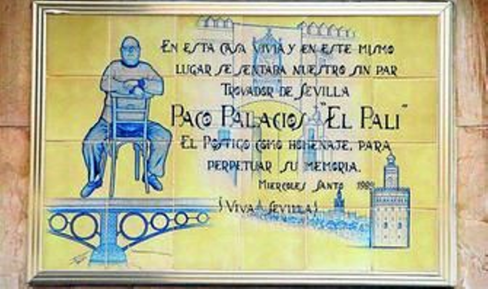 El Pali (1928-1988) nació en el número 6 de la calle Güines, junto a la Casa de la Moneda. El Ayuntamiento que presidía Alejandro Rojas-Marcos decidió rotular con su nombre su calle natal. Cuando llegó a la Alcaldía Alfredo Sánchez Monteseirín, le devolvió a la calle el nombre original, un topónimo cubano, y en el trueque del nomenclátor llevaron al último trovador, como le llama Antonio Ortega en su biografía, a espaldas de la calle Manuel Arellano. "Un callejón, un meadero de gatos al que no van ni los carteros". Lo dice José Antonio Palacios Ramírez, sobrino-nieto del juglar de Sevilla, que espera que 25 años después el actual alcalde de Sevilla, Juan Ignacio Zoido, acoja la demanda de quince mil firmantes entre los que figuran Felipe González, José Rodríguez de la Borbolla o la duquesa de Alba: el nombramiento de Paco Palacios El Pali como hijo predilecto de Sevilla a título póstumo.