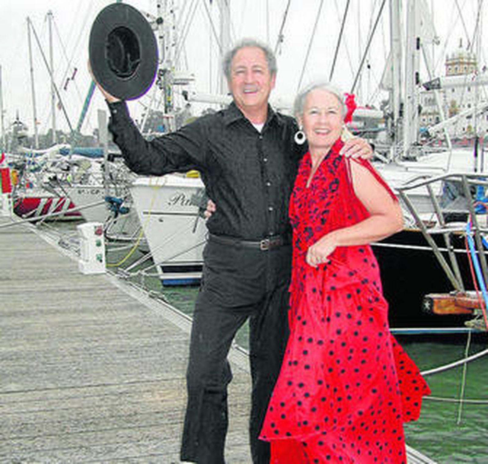 Tanto es así que han decidido instalarse en la capital por largas temporadas. Entreactos. ¿Dónde? En su casa, su barco. Un total de 15 veces han repetido esta experiencia en Sevilla. Su domicilio está en el Club Náutico, donde tienen amarrado su velero. Y se sienten vecinos en Sevilla. Tal es la devoción de estos extranjeros por la ciudad que ya han comprado los billetes de avión para ver la Semana Santa de Sevilla, a donde regresarán en marzo. Estos trotamundos tienen su casa en Arizona, pero ni siquiera allí faltan las alusiones sevillanas. El jardín tiene como nombre El Patio de San Gonzalo y su casa se llama Los Duendes, en relación a una famosa caseta que de la Feria.