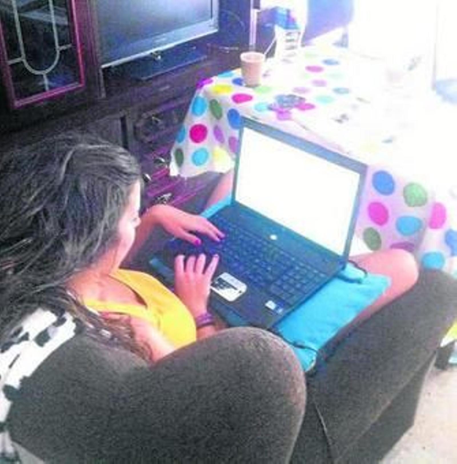 Una universitaria con su ordenador en una de las zonas comunes de un piso compartido.