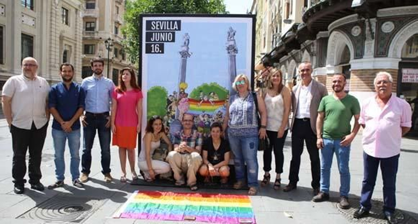 La Plataforma 28-J de Andalucía, organizadora de la marcha del Orgullo de Andalucía 2016, así como los grupos del PSOE, Ciudadanos, Participa e IU-CA del Ayuntamiento hispalense han reclamado este viernes al Grupo popular que "reflexione y rectifique" la "llamada al odio" y a la "homofobia", protagonizada al pedir la retirada de la muestra fotográfica instalada en la avenida de la Constitución sobre la marcha del Día del Orgullo Gay. Las diferentes asociaciones de gays, lesbianas, transexuales y bisexuales que conforman la Plataforma 28-J de Andalucía han celebrado este viernes una rueda de prensa junto al portavoz municipal del PSOE, Antonio Muñoz; el concejal de Ciudadanos Javier Moyano; la portavoz de Participa Sevilla, Susana Serrano; y el portavoz municipal de IU-CA, Daniel González Rojas, para mostrar el rechazo de todos los protagonistas de dicha rueda de prensa a la reacción del Grupo popular ante la citada muestra fotográfica.