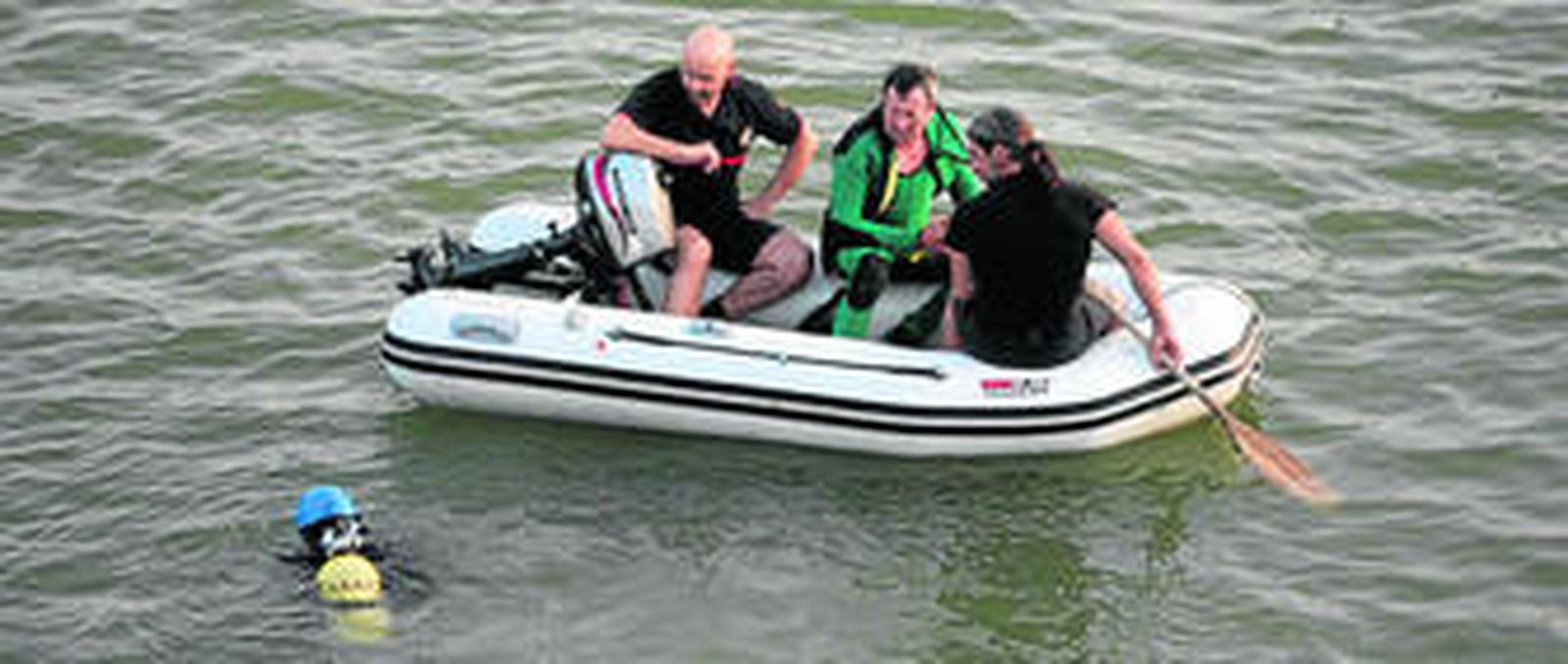 Uno de los buzos se sumergió sobre las nueve y cuarto de la noche, ayudado por su compañero y dos bomberos desde una embarcación. El submarinista realizó una serie de movimientos circulares en torno a la boya colocada cinco horas antes y se pasó más de cuarenta minutos buscando el cadáver sin éxito. Pasadas las diez de la noche, la búsqueda se suspendió por la falta de luz y sigue este miércoles.