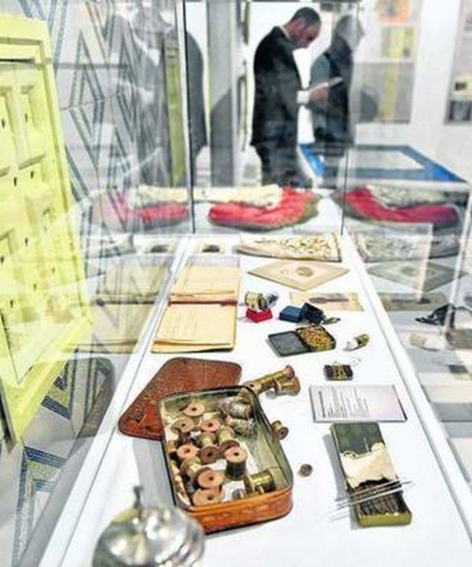 La exposición sirve para rendir un más que merecido tributo a los tres pilares del taller de bordados: José del Olmo, como propietario; Herminia Álvarez Udell, la diseñadora del estilo; y Concepción Fernández del Toro; la maestra bordadora. Tres personas que consiguieron imprimir un sello único al taller que muchos consideran el máximo exponente del bordado. También se pueden ver enseres conservados por Salud del Olmo, hija del bordador, como hilos, bobinas, agujas, cuentahilos...