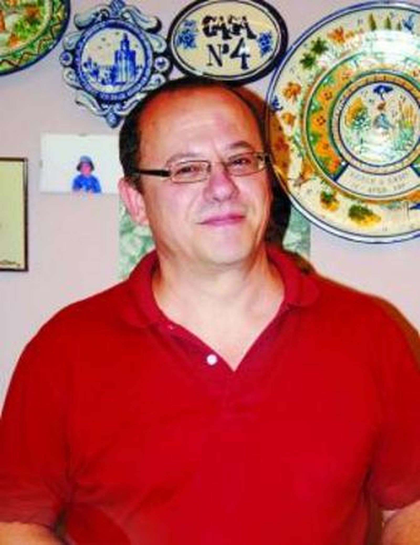 Aunque no es trianero, sino del vecino Los Remedios, Rafael Muñiz cultiva una de las esencias de Triana, la cerámica, desde que se mudó al antiguo arrabal hace ya más de veinte años. Se ha adaptado muy bien, asegura, a este entorno por otra parte "tan castizo y tan sentío" y al que llegó tras conocer a algunos compañeros en la Escuela de Artes Aplicadas y montar un taller de cerámica en la calle Rocío. Cerámica Rocío Triana, precisamente, es el nombre que conserva el taller en el que trabaja con su mujer, María Dolores Gómez Gomila, incluso después de trasladarse a Antillano Campos, 8. Allí trabajan sobre todo la cerámica pintada a mano basada en las antiguas obras del siglo XVIII y XIX, reproducciones de montería en todo tipo de cacharrería y también murales de imágenes, de paisajes, material de construcción... Dice Rafael que para ser ceramista, una vez solucionado el problema de los materiales gracias a los adelantos técnicos, hace falta sobre todo "juego de mano" a la hora de pintar "a trazos rápidos, con mucha intuición, sobre todo en la cacharrería". Y por supuesto, conocimientos, experiencia y muchas horas para dominar la que él denomina "la abuela de las artesanía", y que por tal debería estar más "asistida" de lo que está, rutas turísticas "que sirven de poco aparte". Quizás así se pueda cambiar un futuro gris, dentro del tono general, en el que ceramistas de siempre "lo están dejando".