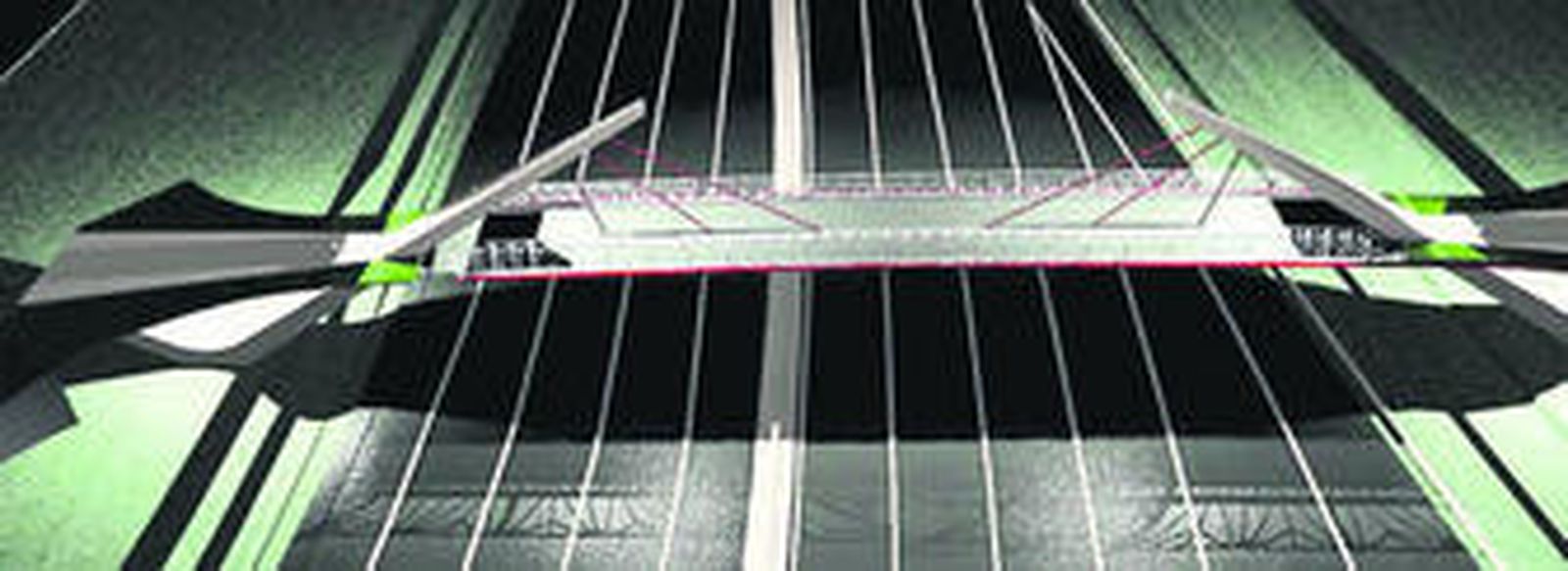 Por otro lado, el diseño del tablero de la pasarela prevé un carril central para los peatones de 1,5 metros de ancho y dos laterales para ciclistas de 1,40 metros cada uno.