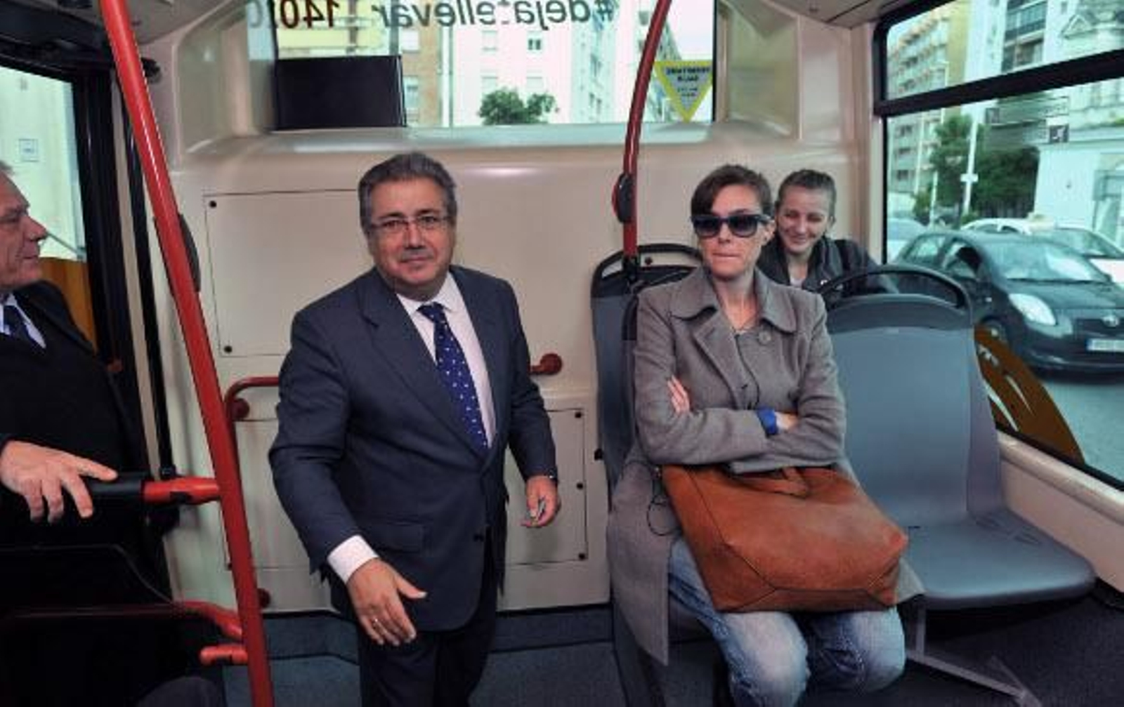 A las 11:40 la primera parte de la comitiva ya marcha en el autobús camino de Heliópolis. El recorrido es agradable y rápido. Paralelo al río. En Plaza de Armas suben varias personas. En la siguiente parada, la de las Naves del Barranco (futuro mercado gourmet), sube el alcalde Zoido junto a Demetrio Cabello, delegado de Seguridad y Movilidad; Amidea Navarro, del Casco Antiguo; José Luis García, del distrito Sur; y Rafael Belmonte, de La Palmera y Bellavista. Ya van todos los que tienen que ir. El alcalde saluda amablemente a los pasajeros, que están un tanto sorprendidos. Con un poco de retraso el conductor reemprende la marcha hacia Reina Mercedes. En este tramo del viaje las apreturas ya se notan. Los munícipes se mezclan amigablemente con los pasajeros. Una señora que se va soltando a medida que habla le relata a Evelia Rincón lo bien que le viene esta nueva línea.