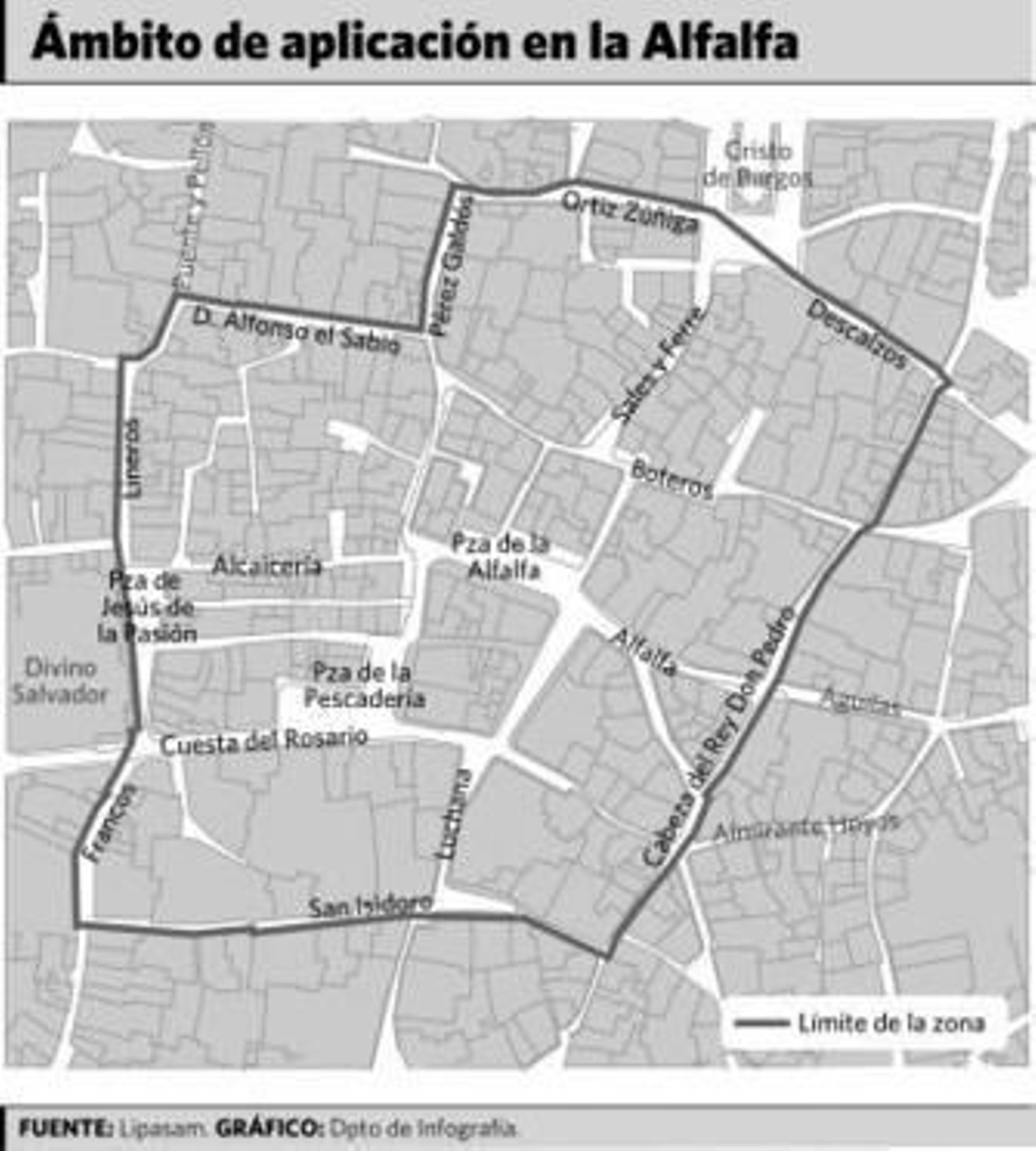 Los cubos individuales ya funcionan en el entorno de la plaza de la Alfalfa, "donde ha tenido una gran aceptación por parte de vecinos y comerciantes". En este caso también se ha realizado una campaña puerta a puerta entre vecinos y comerciantes y el resultado ha sido el reparto de 75 cubos de uso individual que, a su vez, ha supuesto la retirada de 19 ubicaciones -38 contenedores de residuos orgánicos y 19 de envases- y el mantenimiento de otros 10 en las calles Jesús de las Tres Caídas, Cuesta del Rosario, Plaza Cristo de Burgos, Alfalfa y José Luis Luque.