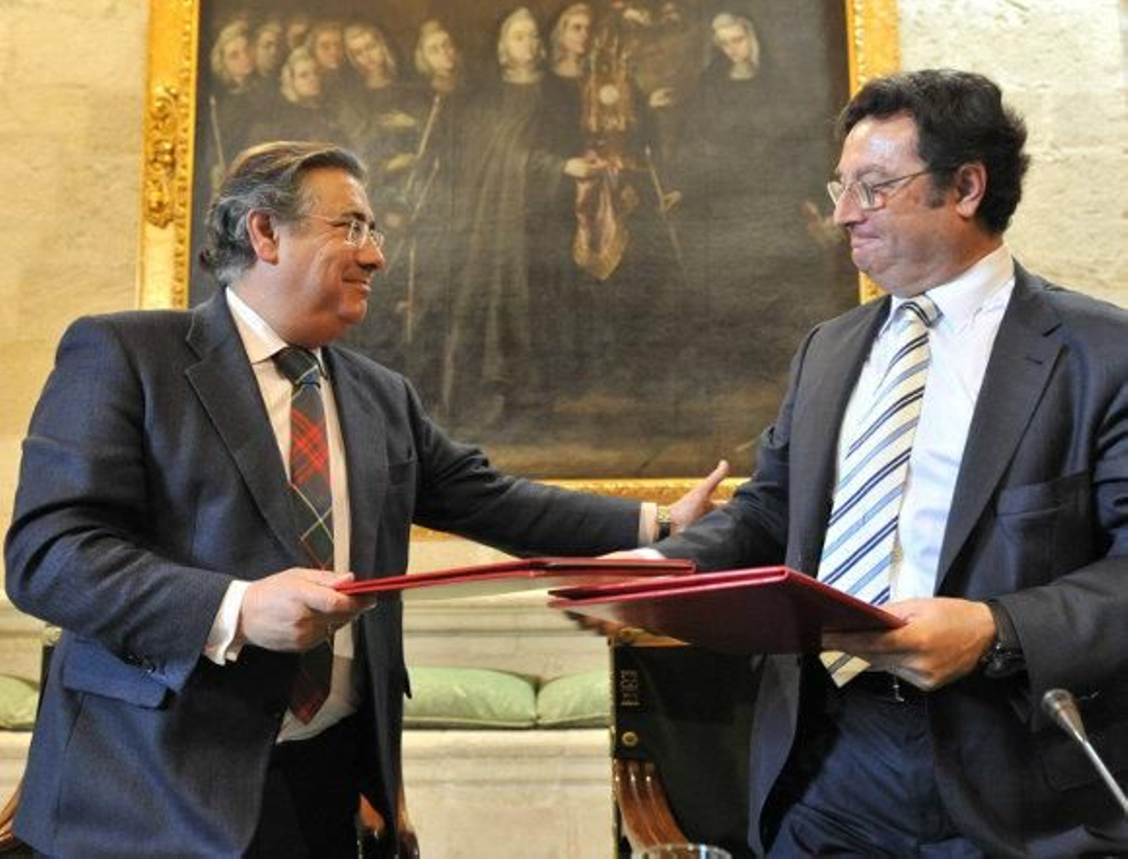 Zoido ha firmado un convenio de colaboración con Francisco Fernández, en representación de la Unión Temporal de Empresas (UTE) entre la constructora San José SA y Cartuja Inmobiliaria SAU, en el que se recoge que el Consistorio podrá facilitar a dicha constructora el acceso a la relación de personas desempleadas que constan en los servicios públicos de empleo de la zona.