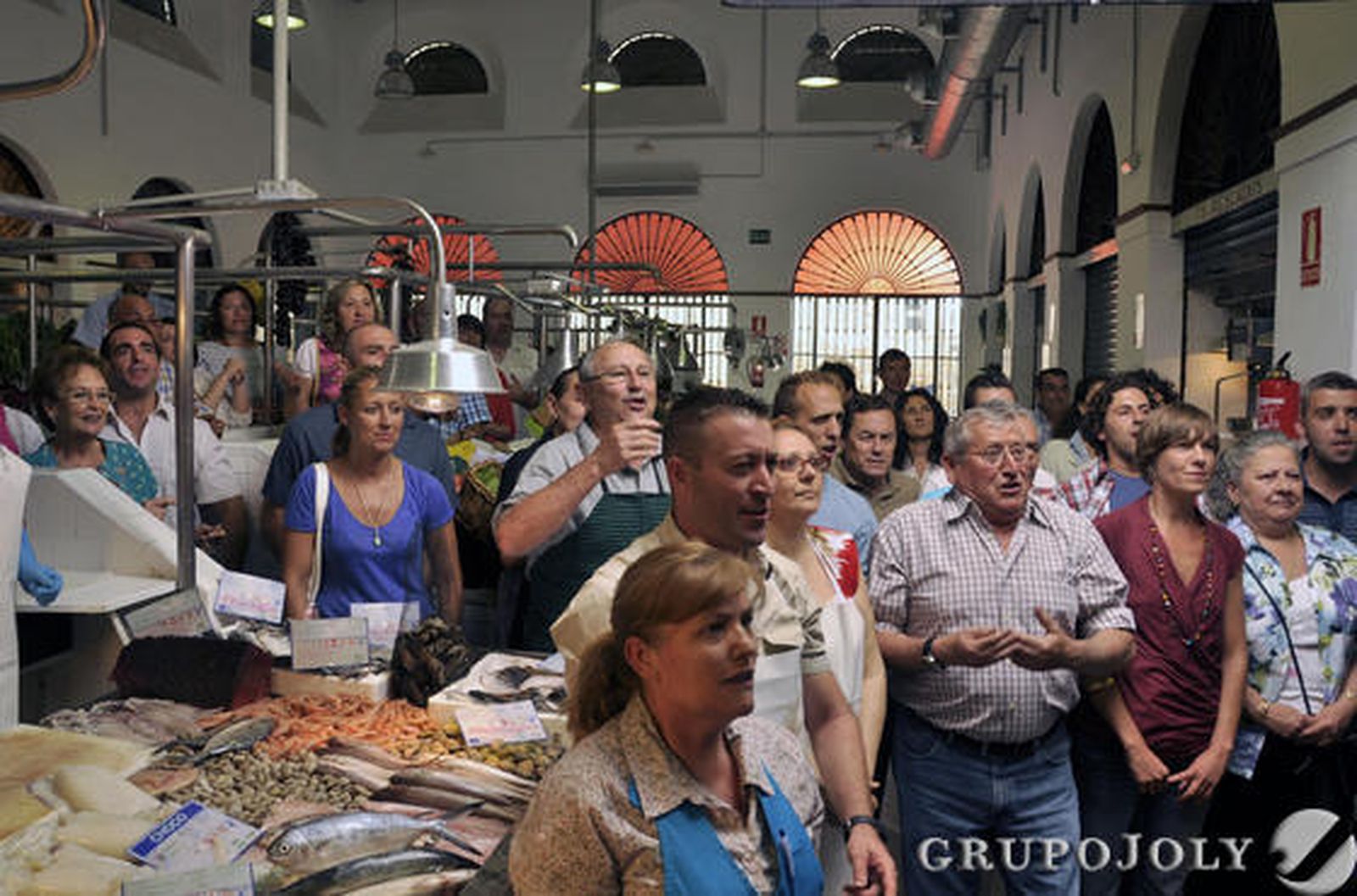 A primera hora de la mañana, algunos de los pescaderos, carniceros o fruteros que regentan habitualmente sus puestos han participado en un "casting" en el que debían mostrar sus artes para el baile y la interpretación.