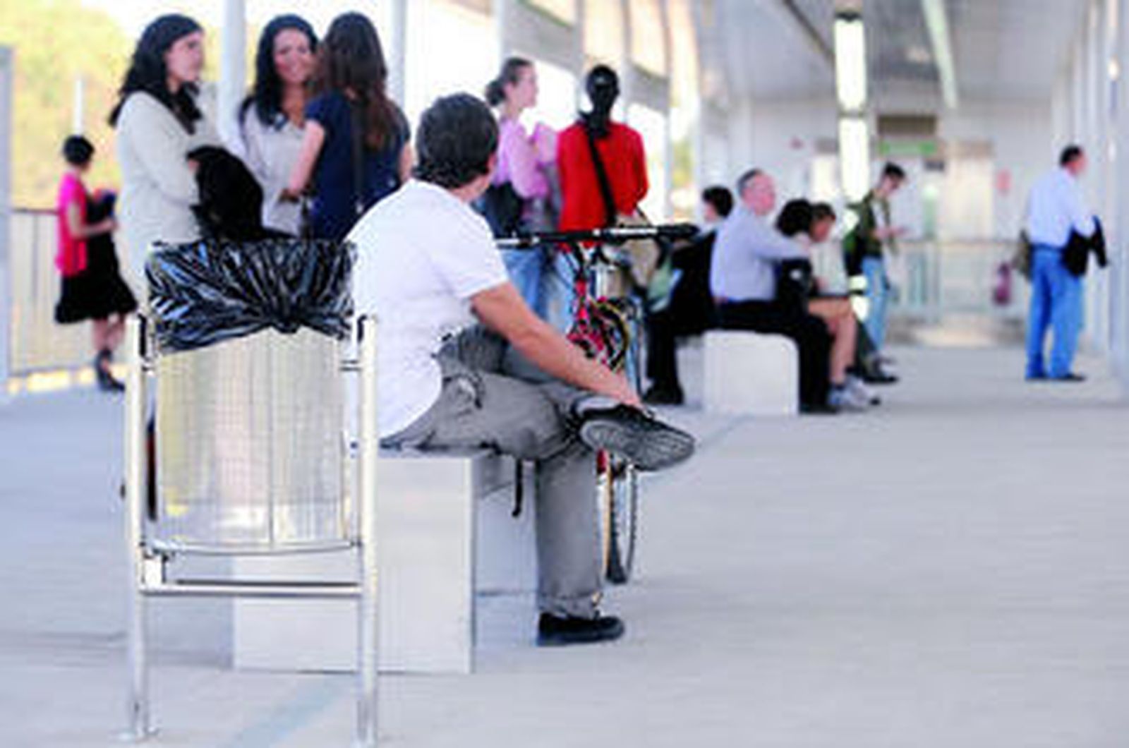 Los asideros han sido instalados en dos unidades · La concesionaria ha empezado a colocar los bancos en las estaciones más antiguas y en la parada de la UPO