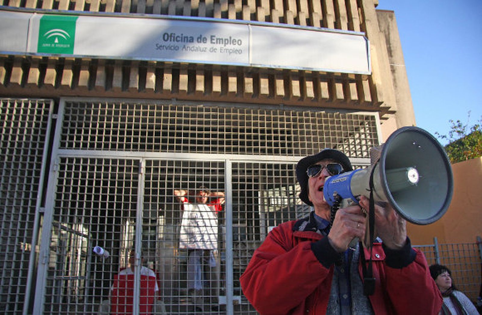 Varios miembros del movimiento 15M han ocupado este lunes una oficina del Servicio Andaluz de Empleo (SAE) de Sevilla para protestar contra la reforma laboral y para reclamar un trabajo digno. Fuentes de la Consejería de Empleo han confirmado que el encierro, que protagonizan unas ocho personas, no está impidiendo el normal desarrollo de los trabajos de la oficina ocupada, la de Cerro-Amate, y han añadido que los encerrados también reclaman ayudas de formación del Gobierno central.