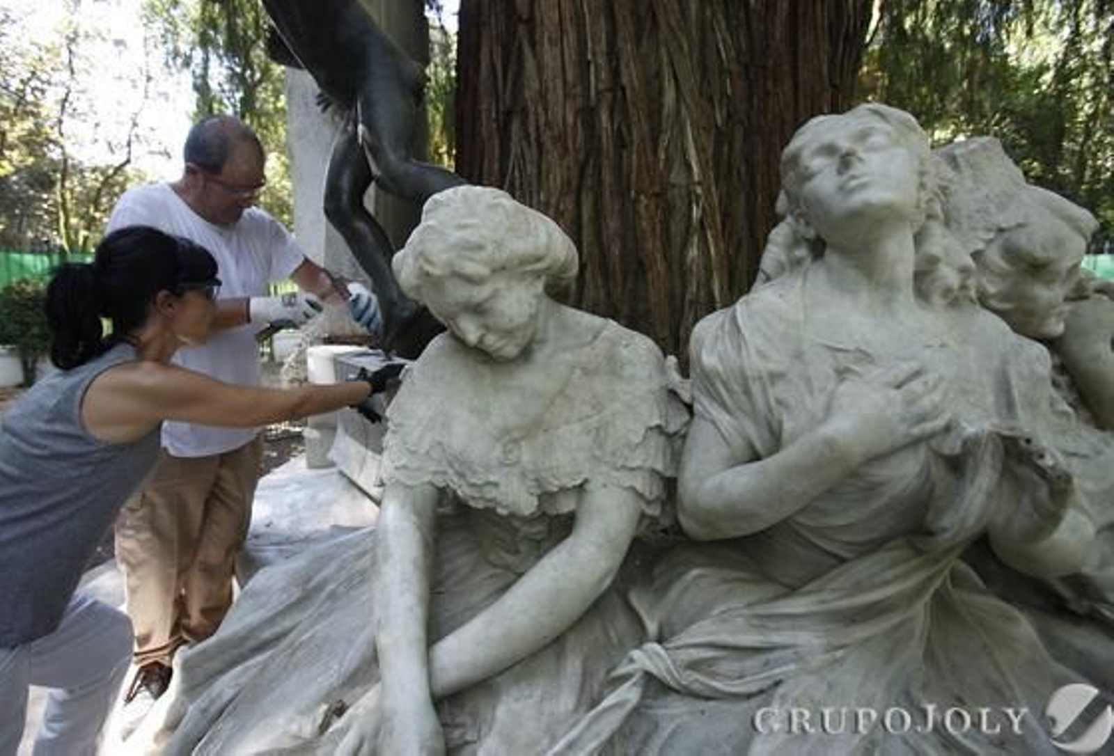 Durante el proceso, que se hará en la misma glorieta, se efectuarán diversas pruebas de limpieza sobre las esculturas para devolverle el color natural. "Tienen mucha suciedad y, además, al ser de distintos materiales no envejece igual. La limpieza es lo que más va a llamar la atención, puesto que el mármol es muy blanco". El bronce también será sometido al mismo proceso y a todo el monumento se le aplicará una protección final. En cuanto a la salud del árbol, Fernández Palomares aseguró que aparentemente está en buen estado, aunque se revisará: "Cuando se separe, vendrán los técnicos para hacer una evaluación. Creemos que no está apoyado en el monumento". En cualquier caso, está contemplado dejar cierta holgura con el tronco para que pueda seguir creciendo, pero conservando el abrazo simbólico que planteó Collaut Valera.