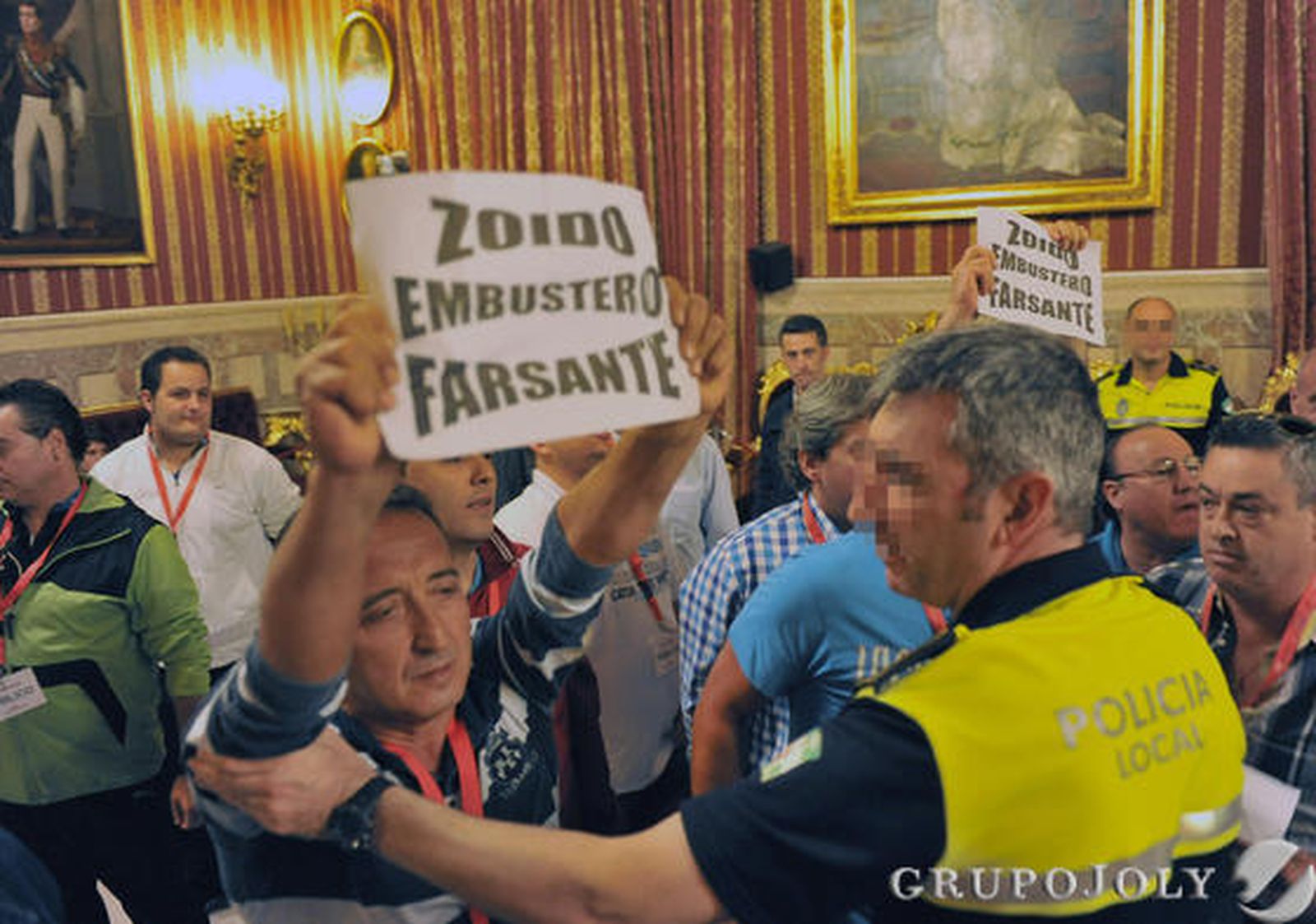 El Pleno tuvo momentos de gran tensión, sobre todo cuando se aludió a los "sobresueldos" de Zoido -con réplica del concejal Serrano recordando las dietas que Monteseirín y Torrijos cobraban en el anterior mandato a través de las empresas municipales- y a la última sentencia del TSJA que declara nulos los despidos de Sevilla Global. El delegado de Empleo también acusó a IU de haber expulsado en 2010 al edil Beltrán Pérez del consejo de administración de Mercasevilla. Una afirmación que fue contestada por uno de los trabajadores del mercado que se encontraba en la sala con el exabrupto: "por perro". Landa llamó la atención a todos los presentes en esa y otras ocasiones, incluso a los concejales populares. De poco sirvió. Durante la votación -realizada a mano alzada, ya que la megafonía y el sistema eléctrónico no funcinaban correctamente- los empleados asistentes a la sesión se levantaron, exhibieron pancartas contra Zoido y proliferaron la consigna: "Mercasevilla no se privatiza" mientras lo expulsaban de la Casa Consistorial.