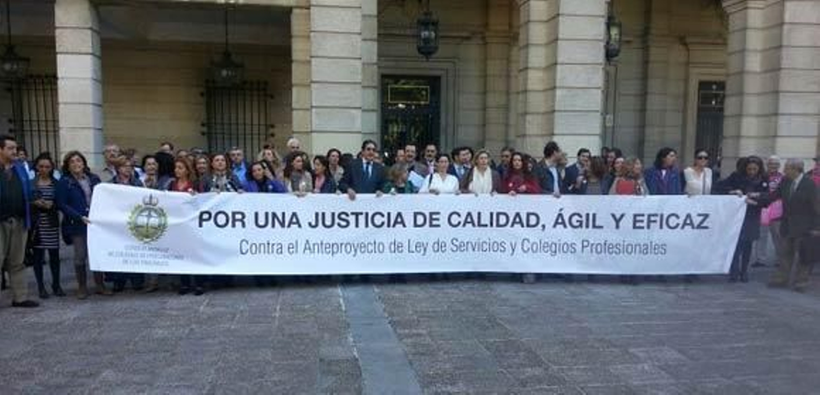 Bajo una gran pancarta con la leyenda "Por una Justicia de calidad, ágil y eficaz", los procuradores de Sevilla han secundado la protesta convocada esta martes a nivel andaluz contra el anteproyecto de ley de servicios y colegios profesionales. Se trata de la primera movilización convocada a nivel regional y la tercera que se celebra en Sevilla.