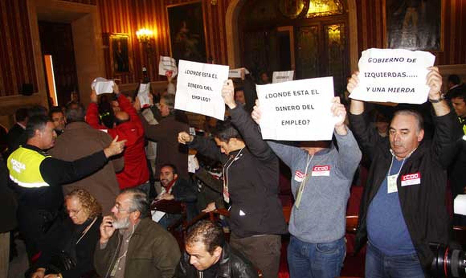 Previamente, un grupo de sindicalistas también fue desalojado del Salón Colón al empezar a gritar la consigna 'Alcalde, cubre las vacantes' en el debate de las transferencias a Tussam, Lipasam y Giralda TV de remanentes procedentes de plazas no cubiertas. Esta causa motivará una manifestación semanal hasta las próximas elecciones municipales, según ya explicó el secretario general de UGT en el Consistorio hispalense, Santiago de los Reyes.