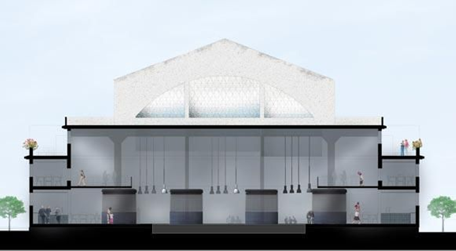 El contenido técnico del único proyecto aspirante a la remodelación del edificio incluye una sala escénica central rodeada de establecimientos de restauración y puestos de 'gourmet'.