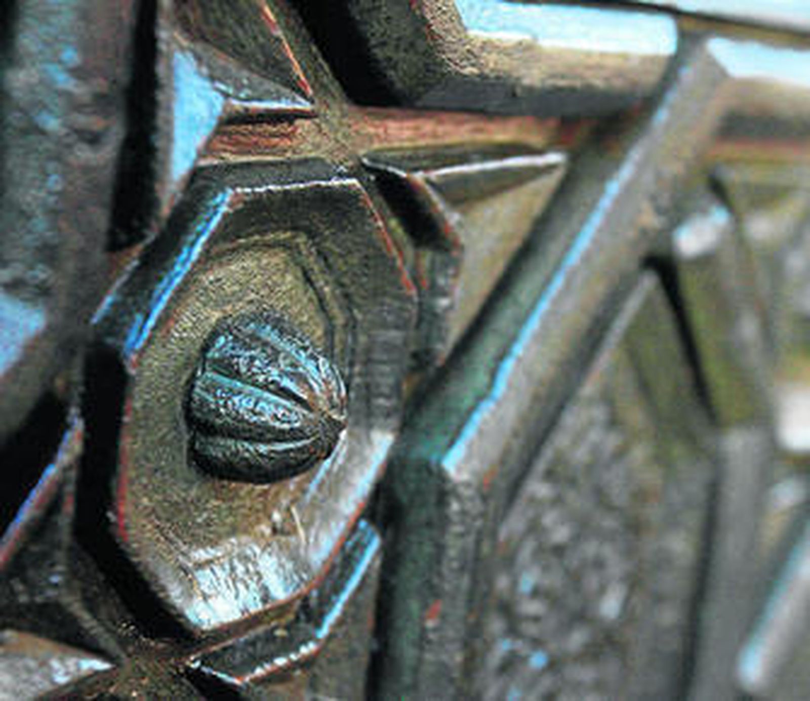 La minuciosidad de esta restauración -que aún está en curso- se aprecia especialmente en las labores de restitución del material perdido. Son los casos de los clavos con cabeza de piña y los clavos de flores, motivos ornamentales que, a modo de tachuelas, adornan las hojas de la puerta. Han tenido que restituirse un total de 75 cabezas de flor, 80 de piñas y dos varillas. Se trata de motivos que se han ido desprendiendo con el paso del tiempo (consta que las hojas llegaron a descolgarse en alguna ocasión) o que incluso han sido arrancadas por visitantes anónimos como recuerdo al estar expuestas al alcance de cualquiera.