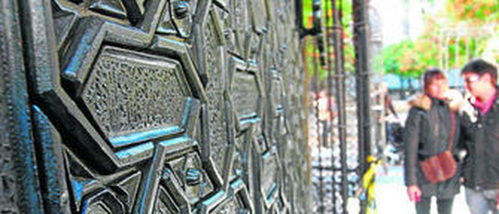 La minuciosa labor que los técnicos de Ártyco están llevando a cabo en la Puerta del Perdón -única que hasta ahora no había recibido un tratamiento específico- ha permitido concluir que las batientes de bronces estaban policromadas. El microscopio empleado con ocasión de las labores de limpieza ha permitido hallar restos minúsculos de bermellón. Estas puertas, al menos, tuvieron color rojo en los huecos de las placas donde aparecen las inscripciones en árabe o dibujos, según los casos. El color se empleó, precisamente, para colmatar esas pequeñas hendiduras y realzar la caligrafía o los dibujos. Los restauradores estudian si además del rojo pudieron haberse empleado otros colores, como el negro, y casi se descarta ya que hubiera tonos dorados. En breve se podrá recrear por ordenador la estética original de una puerta cuyas imponentes hojas tienen una altura de 7,24 metros y una anchura de 1,97 metros.