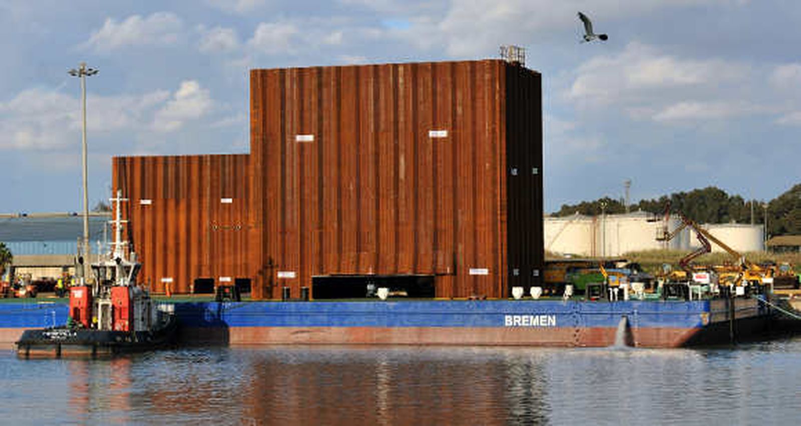 El muelle de la antigua esclusa contaba con una instalación con una grúa cabria ya en desuso, que se ha desmontado recientemente, quedando un espacio de unos 460 metros cuadrados. Este espacio se va a pavimentar con losas de hormigón en masa, al igual que las existentes a su alrededor.