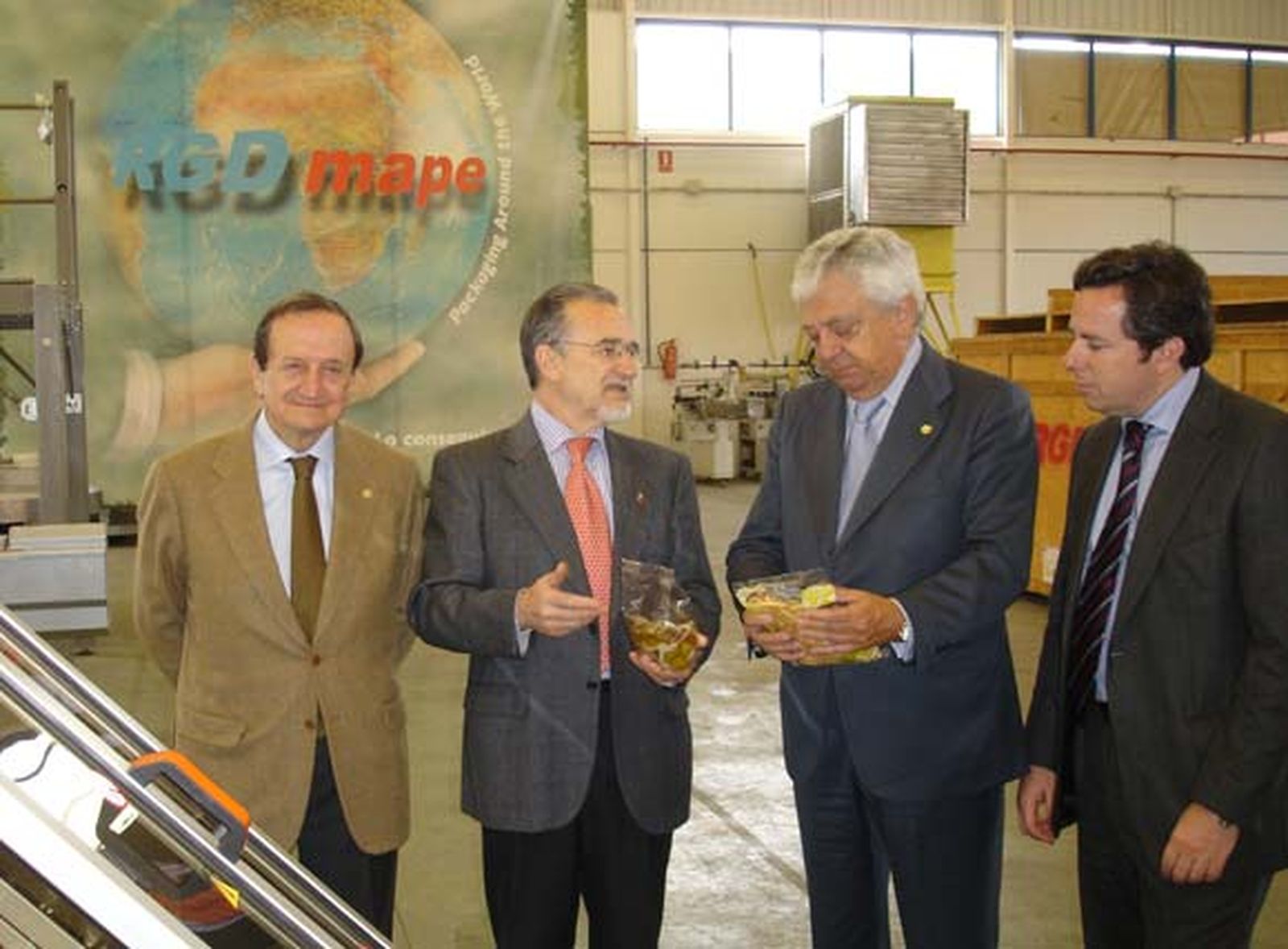 El presidente de la Cámara de Comercio de Sevilla, Francisco Herrero, acompañado por el presidente de la Cámara Italiana de Sevilla y miembro de la junta directiva de la Cámara de Comercio de Sevilla, Augusto Jannone, visitó las instalaciones del grupo empresarial sevillano RGD MAPE, especializado en el desarrollo y elaboración de maquinaria de packaging y embalaje para principalmente el sector agroalimentario.