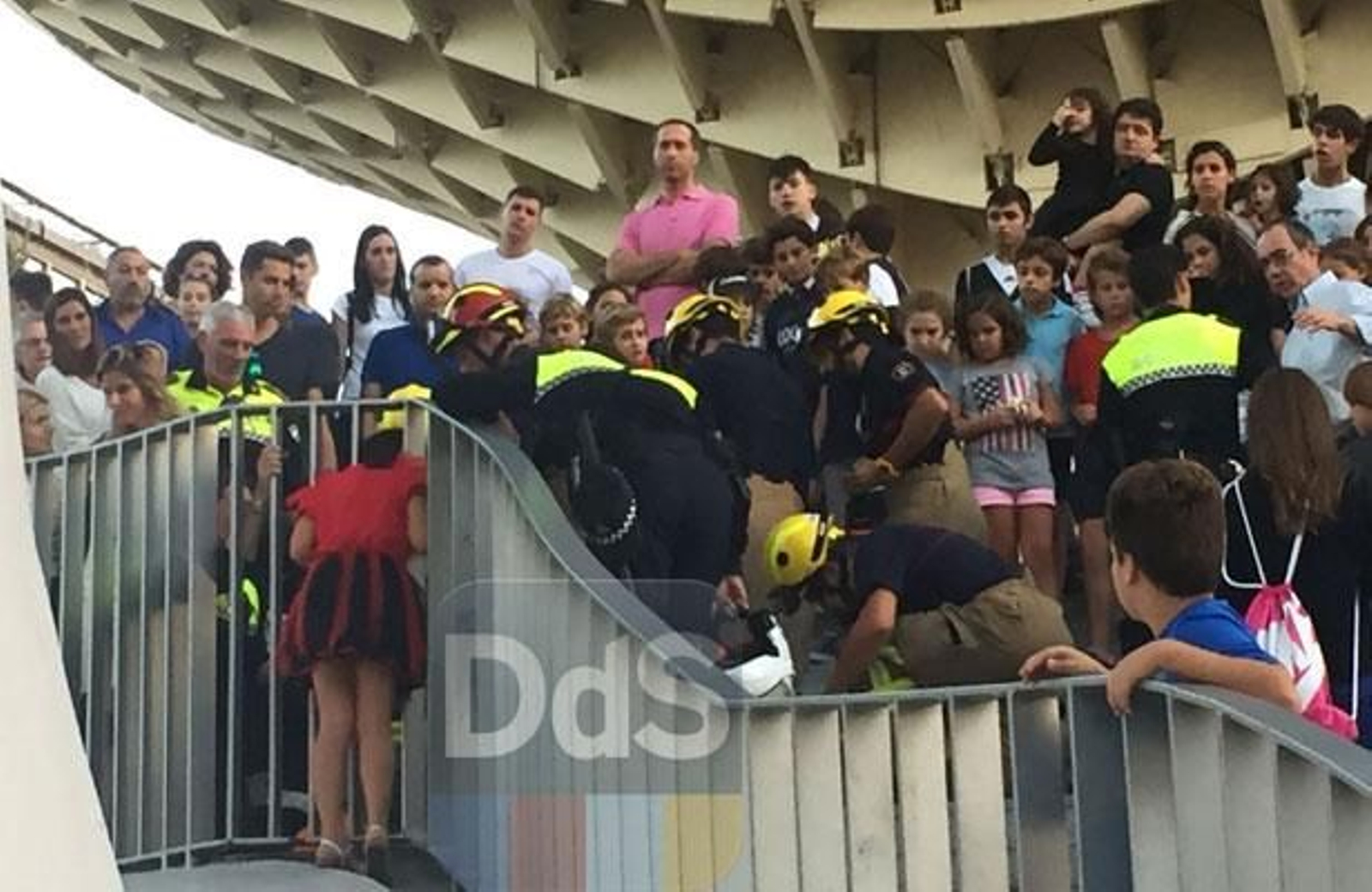 Una niña ha tenido que ser rescatada en las setas, tras haber quedado atrapada entre los barrotes de una de las rejas que hay en el recinto de Metrosol Parasol. Los bomberos tuvieron que acudir para ayudar a la niña a sacar el miembro de la reja.