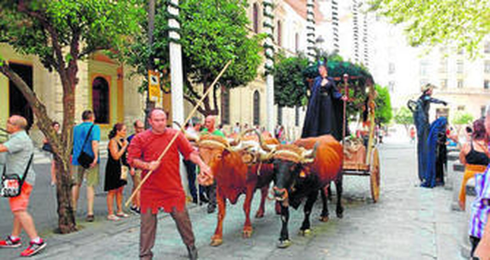 LOS bueyes eran como los que antes de Pentecostés arrastran las carretas camino del Rocío. Pero estos bóvidos que llegaron hasta el Ayuntamiento de Sevilla tiraban de un carruaje muy singular. Lo presidía el hada Maléfica, musa icónica de la vigésima primera edición de las Jornadas Medievales de Cortegana que tendrán lugar en este paraíso de la sierra de Huelva entre los días 11 y 14 de agosto.