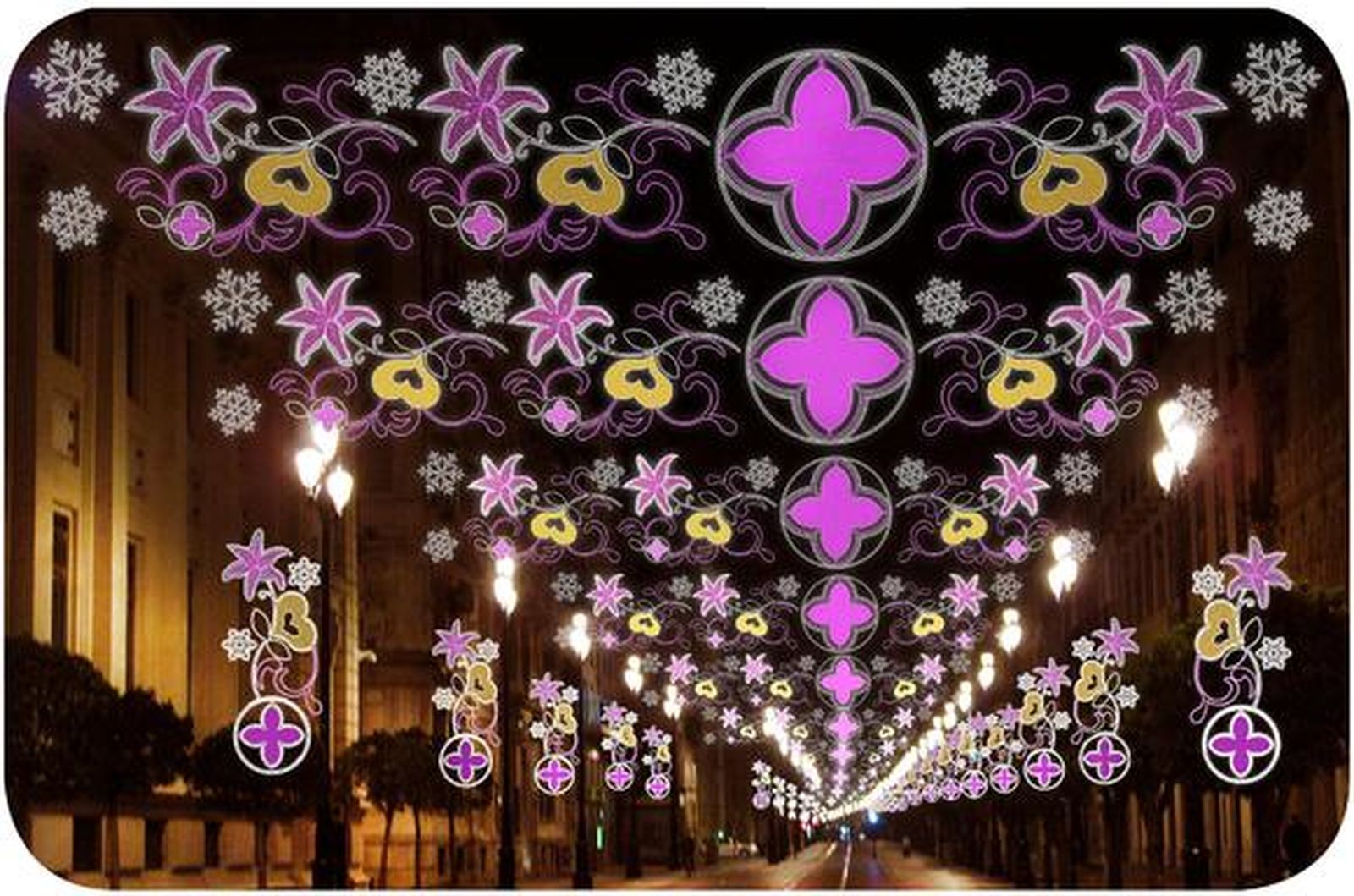 En esta "apuesta decidida" por el alumbrado y los espectáculos al aire libre hay importantes novedades. Por primera vez se podrá seguir un recorrido iluminado ininterrumpido. Irá desde el Prado hasta el Puente de la Barqueta. Varias son las sorpresas que presentará este itinerario. A la entrada de la calle San Fernando se instalará un gran árbol iluminado de 20 metros patrocinado por Vodafone. El diseño de las luces de la Avenida será completamente nuevo. Inspirado en la Catedral y la Giralda, presenta motivos góticos o las características azucenas que coronan el alminar. "Buscamos darle un contenido cultural relacionado con nuestro patrimonio".