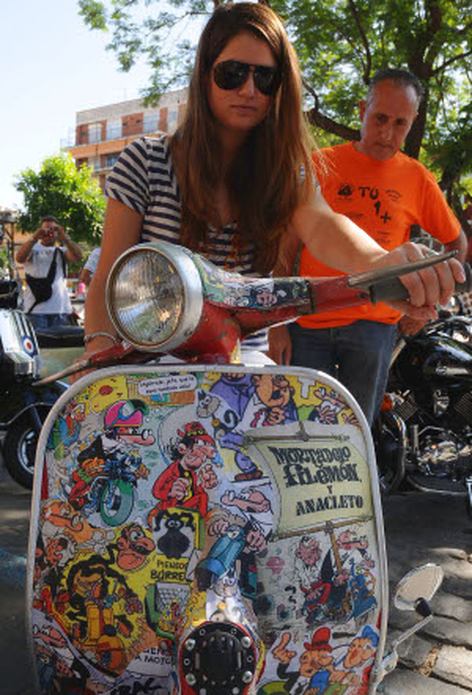 En la concentración se apreciaron vespas de todos los modelos: Primaveras, PX 200, un sidecar de principios de los 60, clásicas con 30 años o vespas más modernas como la de Daniel Agudo, una PX Disco de 2001. “Mi primera vespa fue una PK (PeKadora) de 75 cilindradas que compré en 1990, me enamoré de sus curvas”, recuerda Daniel, quien padece una discapacidad física en la pierna izquierda. “Las vespas me han dado la oportunidad de manejar las marchas con la mano –una de sus señas de autenticidad es la colocación de las marchas en el puño izquierdo– y poder disfrutar de las motos”.