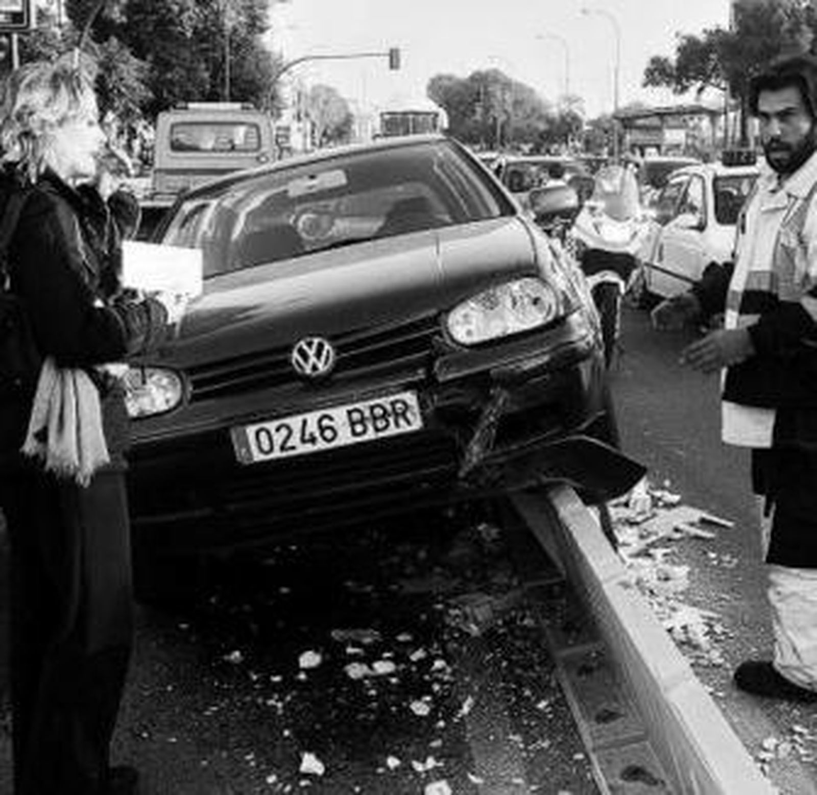 El peligro de estos accidentes son los restos que deja en la calzada: tornillos sueltos y los trozos de hormigón que suponen un riesgo para la circulación.