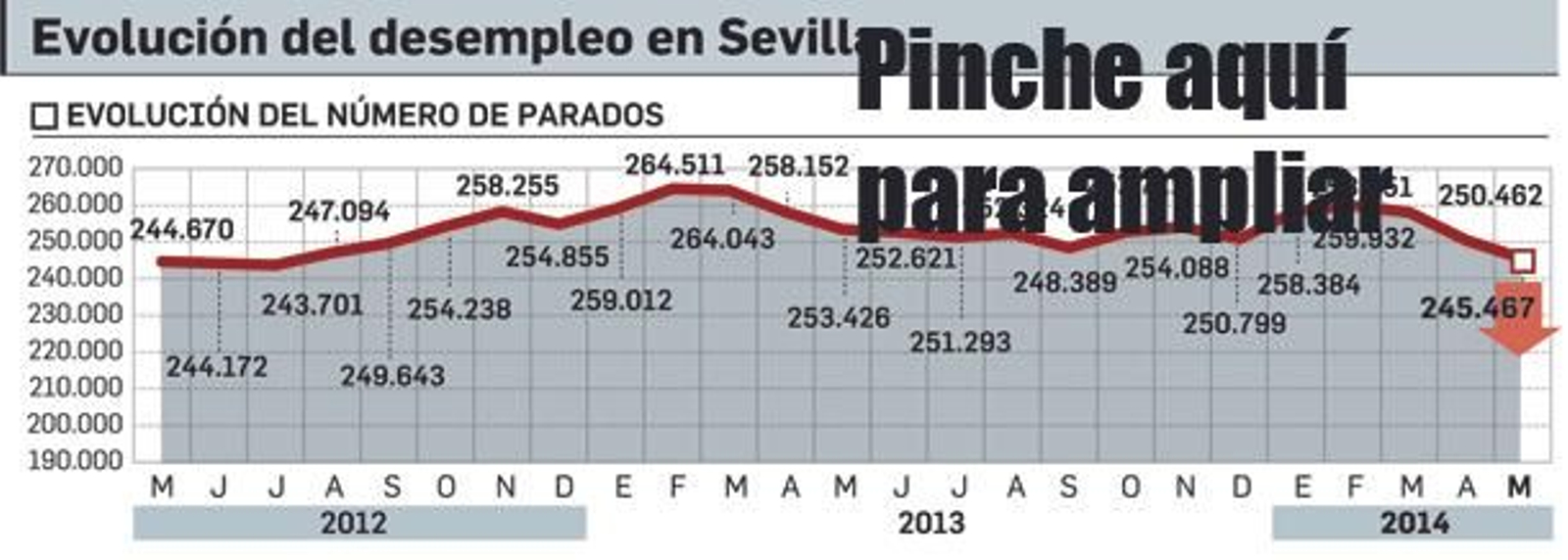 Así, el desempleo cae en 4.935 personas (160 parados menos al día), hasta situarse la cifra 245.467 (87.992 en la capital), de nuevo por debajo de 250.000, barrera psicológica de la que no se bajaba desde septiembre del año pasado. En términos porcentuales, el descenso (-1,97%) es menor que a nivel nacional (-2,39%) pero mayor que en Andalucía (-1,34%), donde sólo provincias de reconocido tirón turístico como Cádiz y Málaga se comportan mejor. Y en la perspectiva histórica es el mejor mes de mayo desde el año 2003, aunque ya en 2013 y 2011 se produjeron descensos bastante similares del paro (de 4.934 y 4.904 personas, respectivamente).