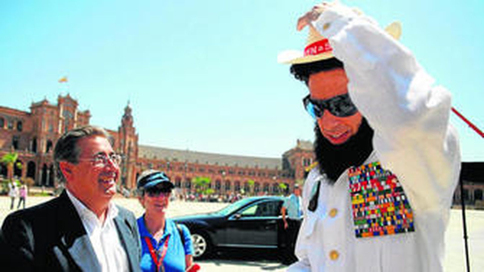 Hay quienes bromean, con más o menos sarcasmo, preguntando quién es el personaje que falta ya en el álbum del nuevo alcalde. Puro marketing, pero al servicio de la ciudad, según diría el primer edil. Lo cierto es que la visita de Zoido al rodaje, donde pudo departir con los productores y el actor principal, Sacha Baron Cohen, fue el anuncio más barato jamás soñado. Imaginación y austeridad. El alcalde presume de no haber tenido que ir Nueva York para demostrar que Sevilla se ve, según rezaba el lema de la última campaña de la era Monteseirín, que puso en marcha el ex alcalde socialista en los últimos meses de su mandato y que absorbió el presupuesto de publicidad institucional.