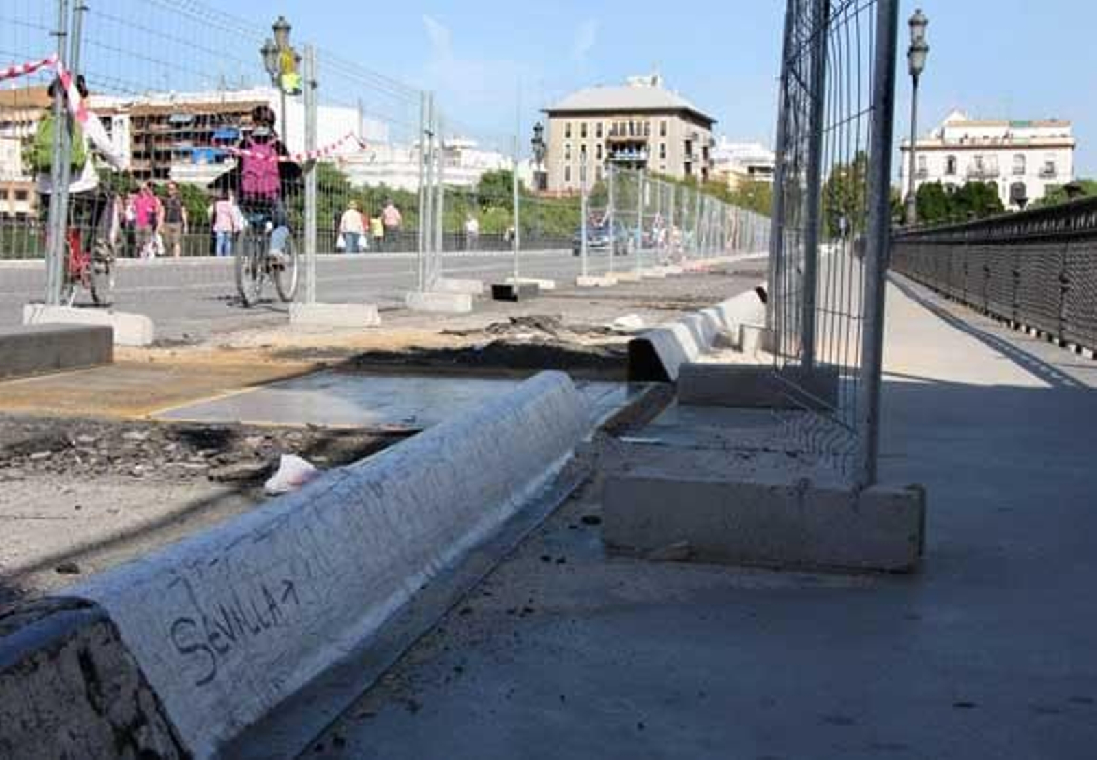 El puente de Isabel II, construido en el siglo XIX, declarado monumento histórico en 1976 y símbolo del barrio de Triana, se han propuesto cargárselo y para ello se está construyendo un carril bici que en dicho lugar no pinta nada.