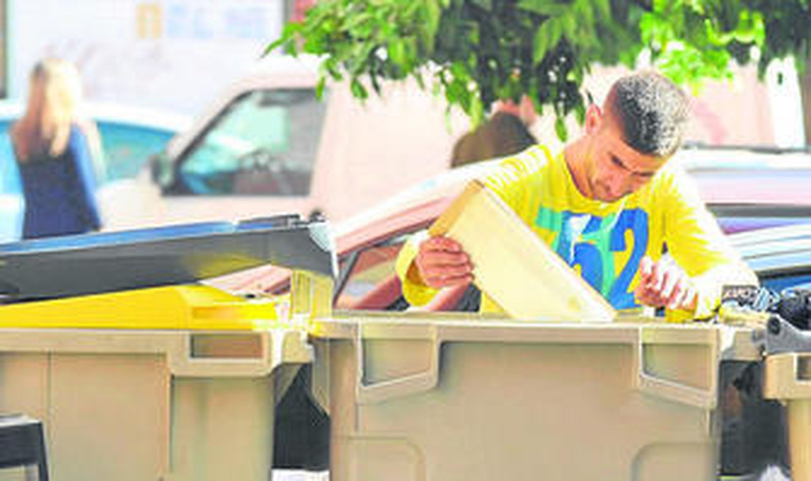Esta sensación, incluso, lo cohíbe para salir en una foto. Rehúye la camára. Con suerte, algunos días en un contenedor junto al centro comercial Alcampo, en la Avenida de la Paz, llega antes que los rumanos. Así se puede hacer con suficiente material por el que le pagarán una buena cantidad. Si todo marcha bien, en una semana llevará a casa más de 100 euros. En esto consiste sobrevivir con la chatarra.