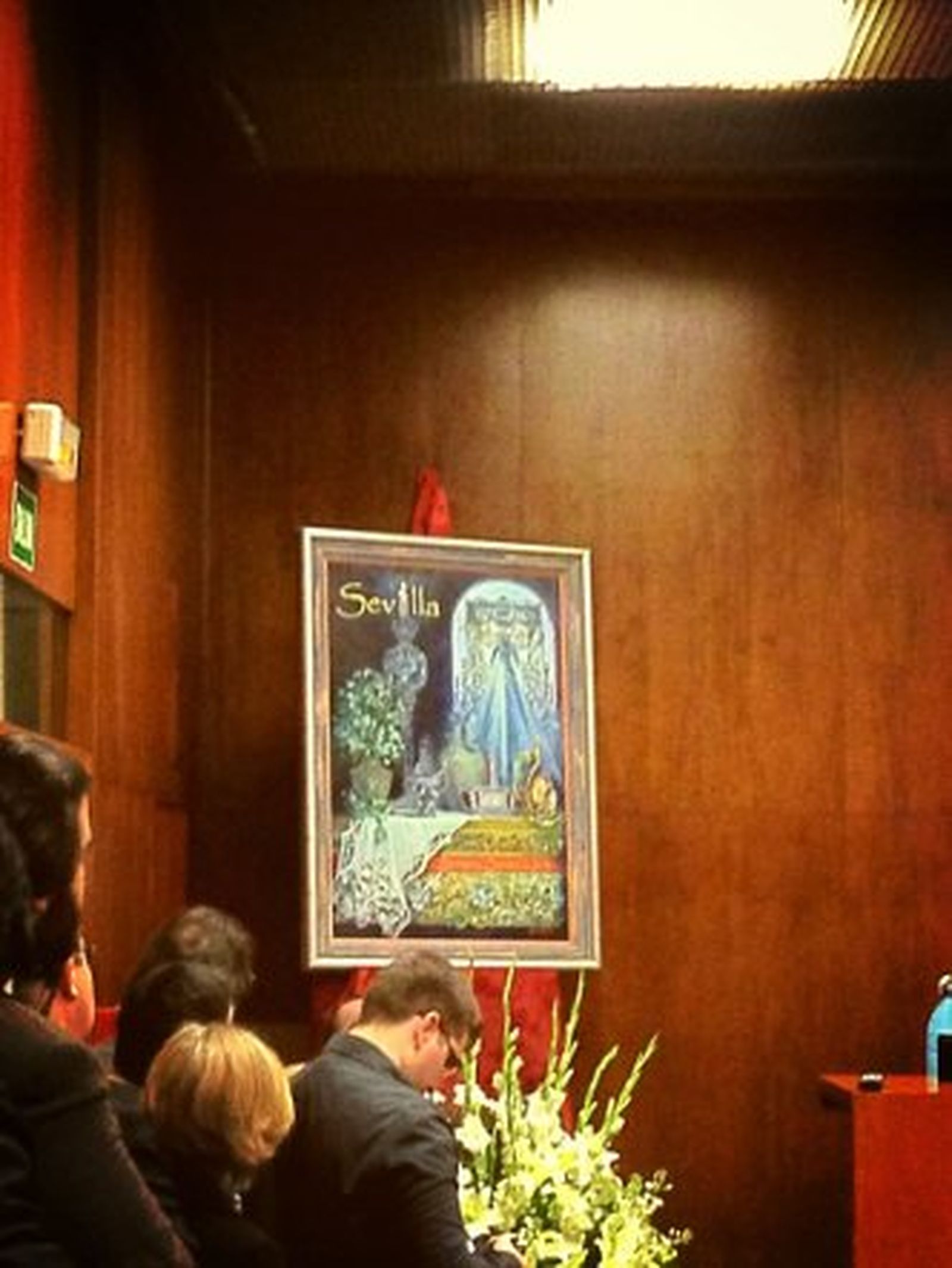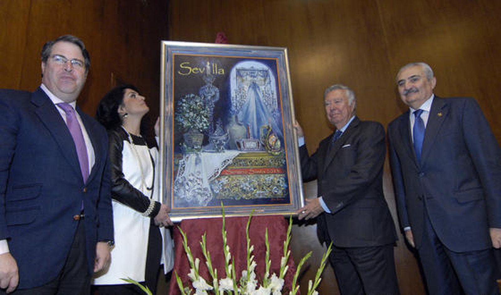 Toda la escena se apoya sobre la canastilla del paso de la Soledad de San Lorenzo, cuyas letras en latín se han transformado en la leyenda Semana Santa 2013. Barrera, en otra muestra de su profundo conocimiento de la Semana Santa, recurre al paso para evocar la pureza de María, representada en las azucenas dibujadas en las andas soleanas. Sobre la mesa aparecen siete elementos imprescindibles en la Semana Santa. La música, en la corneta de la Centuria Macarena, "mensajera de la Esperanza". El orden, el trabajo de la cofradía y los nazarenos, en el canasto de uno de los diputados de la Amargura. Aquí viene el guiño al Vía Crucis de la Fe: "Son catorce secciones, como el vía crucis". El búcaro, que evoca a los costaleros y a su esfuerzo. Dos son los olores que ha pintado Barrera. El incienso, en la naveta de la Mortaja, "que con su vela desplegada es nuestro símbolo del año de la Fe en la orfebrería sevillana". Y el azahar, en una de las jarras de la Virgen de la Concepción, "que sutilmente va apareciendo durante la cuaresma para anunciarnos lo que viene, concentrándose en ese palio único de la Madre y Maestra".