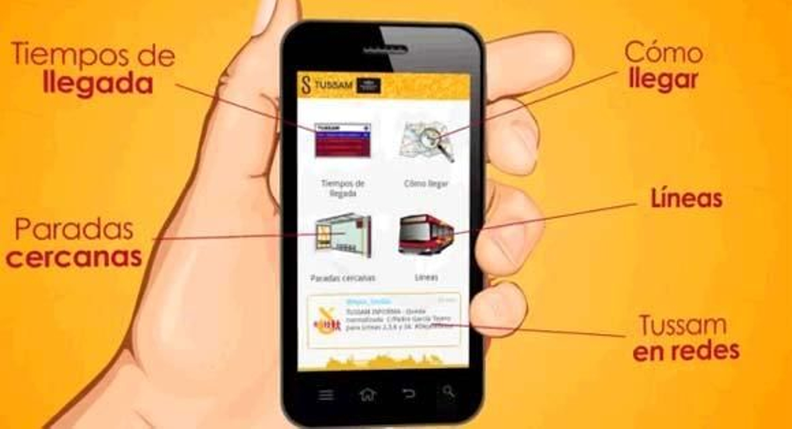 El alcalde de Sevilla, Juan Ignacio Zoido, ha anunciado la puesta en marcha de una aplicación móvil gratuita de la empresa municipal de transportes, Tussam, para que los usuarios puedan consultar desde sus teléfonos los tiempos de espera, ubicación de las paradas y tengan información sobre cómo llegar a los distintos puntos de la ciudad en transporte público. Además, si existe una diferencia de más de cinco minutos entre el tiempo de espera que marca la aplicación y la llegada del autobús, Tussam reembolsará el importe del billete.