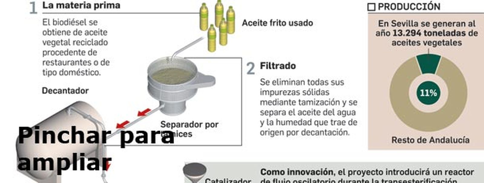 Con el lema Este autobús funciona con el mismo combustible que este pescado frito, a primeros del año que viene, entre enero o febrero de 2017, la empresa Tussam va a probar en uno de sus vehículos cómo funciona un biodiésel vegetal que la Facultad de Química de la Universidad de Sevilla ha logrado extraer a partir de los aceites usados de fritura. Será la fase de ensayo del proyecto europeo Life Biosevilla -de 1,5 millones de euros- en el que participa la empresa de transportes urbanos con el objetivo de comprobar la eficacia de este nuevo biocombustible de más calidad y comprobar los efectos de reducción de gases contaminantes a la atmósfera.