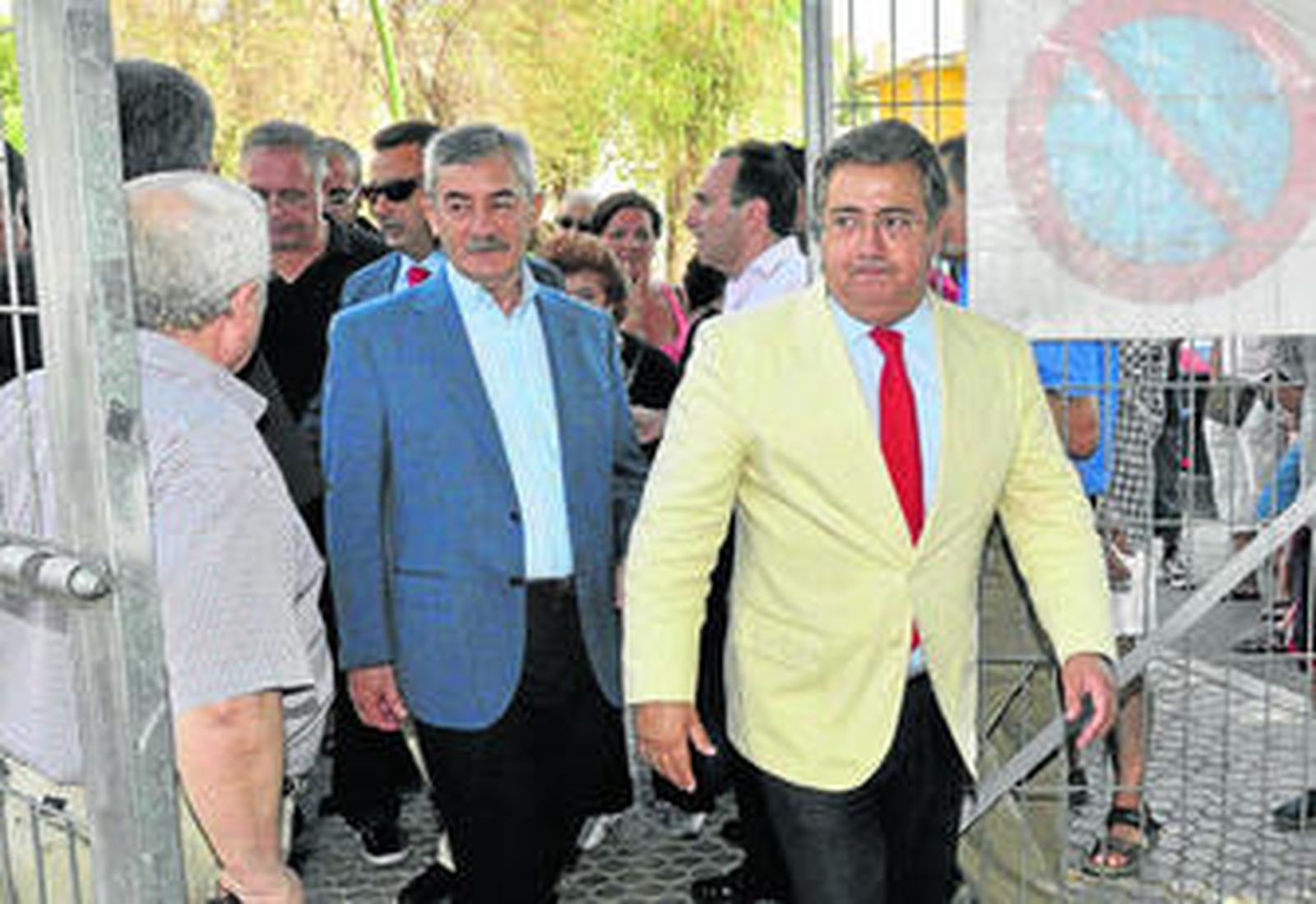 Zoido visita el terreno, sobre el que se ha practicado ya el retranqueo, último trámite antes de que comiencen las obras. Lo hace en compañía de los delegados de Movilidad y Seguridad, Demetrio Cabello, y del distrito Cerro-Amate, José Miguel Luque. También le acompañan policías locales, entre los que extraña la ausencia del jefe del cuerpo, José Aulet. El oficial de más rango es el intendente Miguel Acuña, uno de los candidatos al puesto de jefe una vez que sea destituido Aulet. Tampoco está invitado el sindicato mayoritario, el Sppme, que sí recibía invitaciones para los actos del PP durante la campaña electoral.
