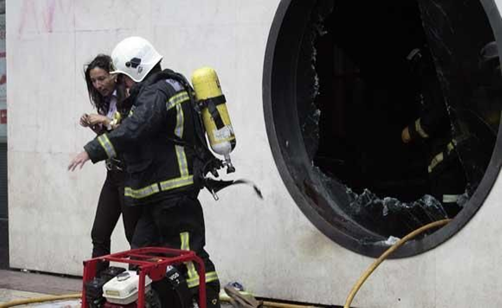 Dos afectados por inhalación de humo tras incendiarse una sucursal bancaria