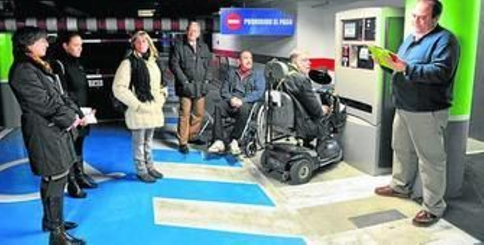 Inspección. Representantes de diferentes colectivos de discapacitados revisaron los niveles de accesibilidad del remozado parking que Aussa gestiona en el Arenal.