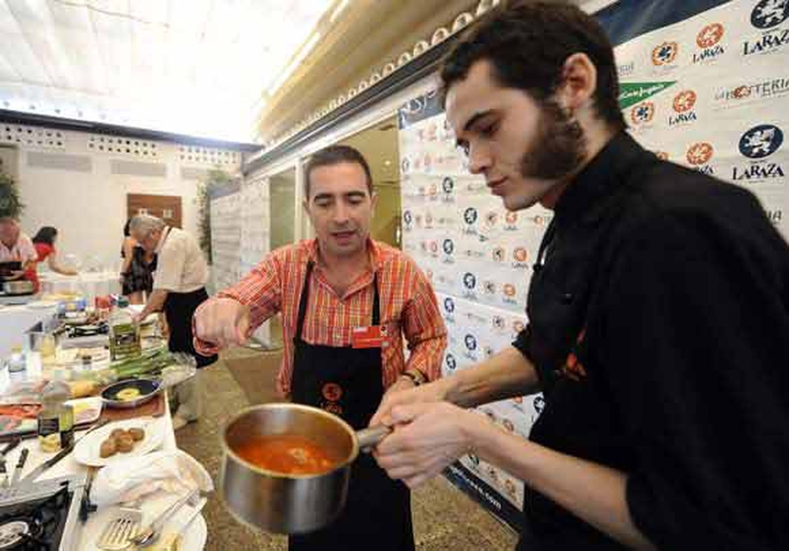 Si se premiara la sencillez, al podio habría subido Javier Díaz, fotógrafo de El Correo de Andalucía, que acudió al concurso con su caballa al aroma de la crisis. “Tres euros para cuatro personas”. José Damián Liroa, productor de Canal Sur, onubense de Beas, aprendió a cocinar en un piso de estudiantes. Presentó un plato de autor, Sinfonía Al Andalus, un bacalao al perfume de canela con cebolla caramelizada con rojo de oporto y blanco de montilla moriles.