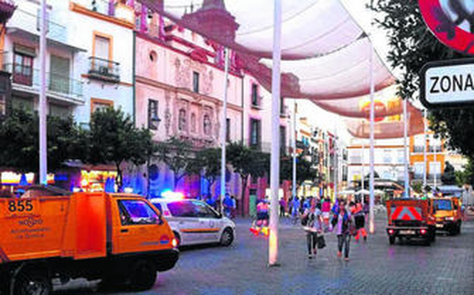 El dispositivo de la Policía Local tuvo que ser dirigido por dos oficiales de la unidad de Motoristas, puesto que el responsable del distrito Centro se encontraba en ese momento al frente de un grupo de policías que participaban en uno de los servicios preventivos contra la prostitución callejera puestos en marcha por el Ayuntamiento de Sevilla desde el pasado verano.