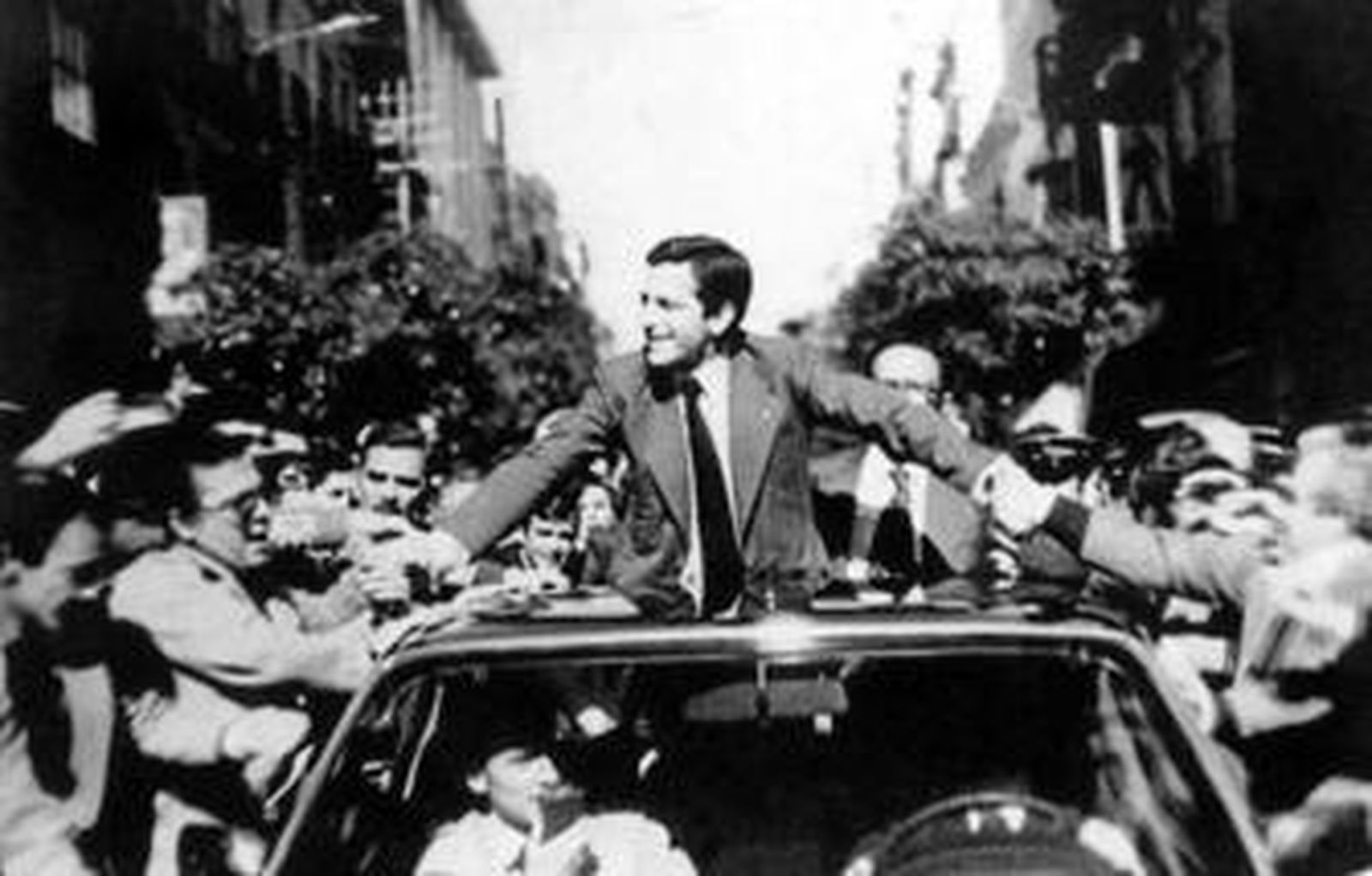 Pero ni el empeño del Rey ni la habilidad profesoral de Torcuato hubieran servido de mucho si no les hubiera tocado la lotería de Adolfo Suárez. Nacido en 1932 en un pequeño pueblo de Ávila, de familia republicana, Adolfo Suárez había empleado buena parte de su juventud y sus primeros años de madurez en medrar dentro del aparato político del Movimiento Nacional. Era un apparatchik de libro, que fue escalando puestos a la sombra de Fernando Herrero Tejedor, prototípico dirigente franquista, hasta alcanzar la dirección general de RTVE. Ese puesto le permitió tejer una amplia red de contactos en el corazón del régimen que luego le serían de gran utilidad. Pero sobre todo, le puso en bandeja una relación frecuente con el entonces Príncipe Juan Carlos, que acababa de ser nombrado por Franco como su sucesor y al que el joven Suárez hizo una magnífica campaña de promoción pública desde la única televisión que existía entonces.