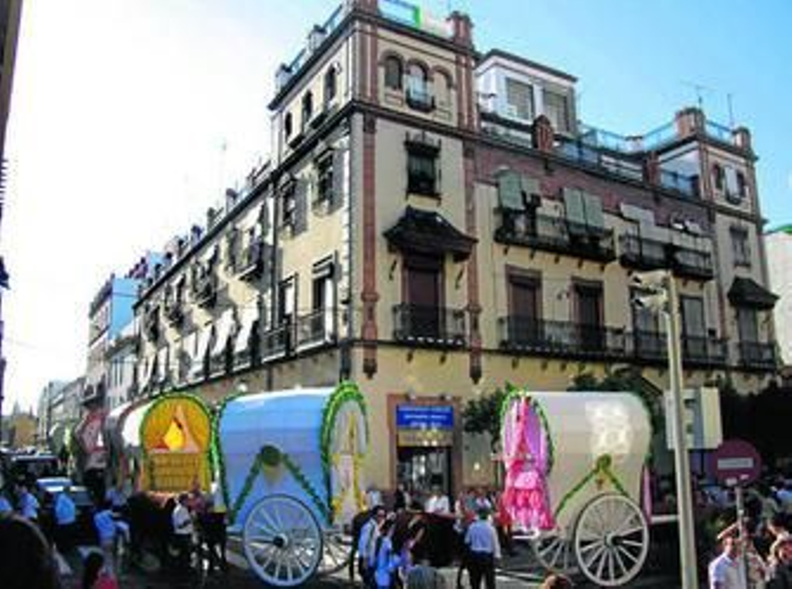 La fiesta se desparrama por otros puntos de la ciudad. Menos gente que otros años, pero las mismas ganas de sacarle una sonrisa a la vida. En Santa Ángela igual se escuchan rumbas que cantos conventuales. Cerca del Cerro los alumnos del Colegio Ortiz de Zúñiga tocan la gaita rociera. Las plegarias inundan los pueblos del Aljarafe. En Tomares, Umbrete, San Juan y otra veintena de pueblos se repiten los avemarías. En Castilleja de la Cuesta los discapacitados mentales de la residencia construida por la Hermandad de Triana depositan ante el simpecado las más preciadas flores que luce la carreta.