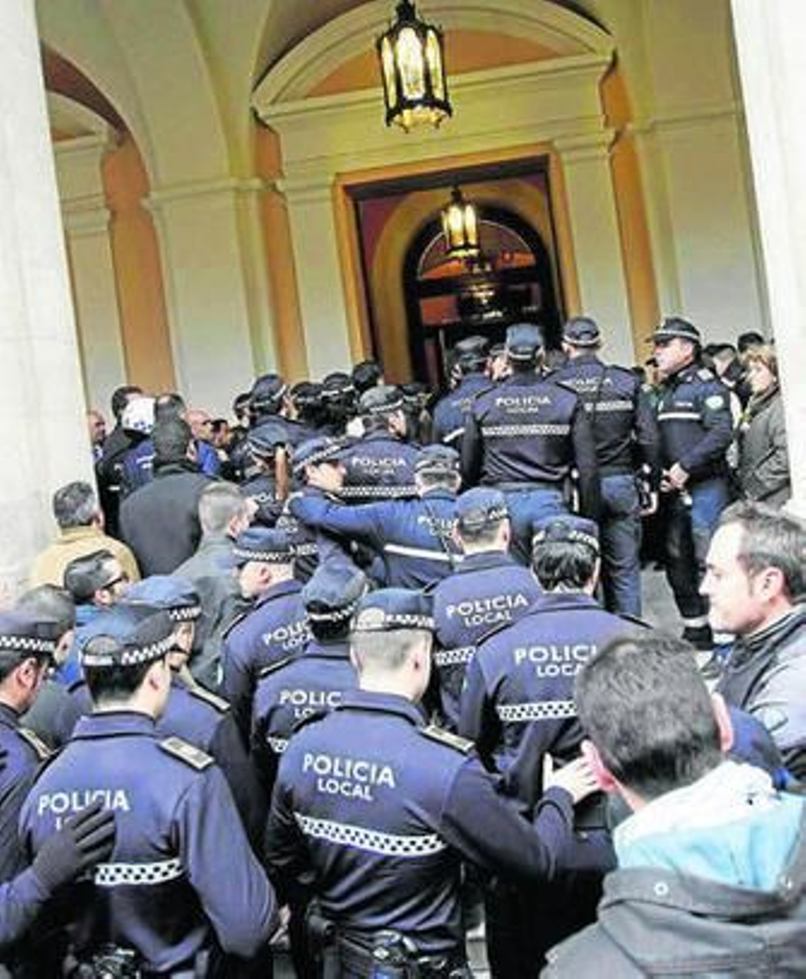 Numerosos compañeros y amigos del agente fallecido velaron sus restos en la capilla ardiente del Consistorio.