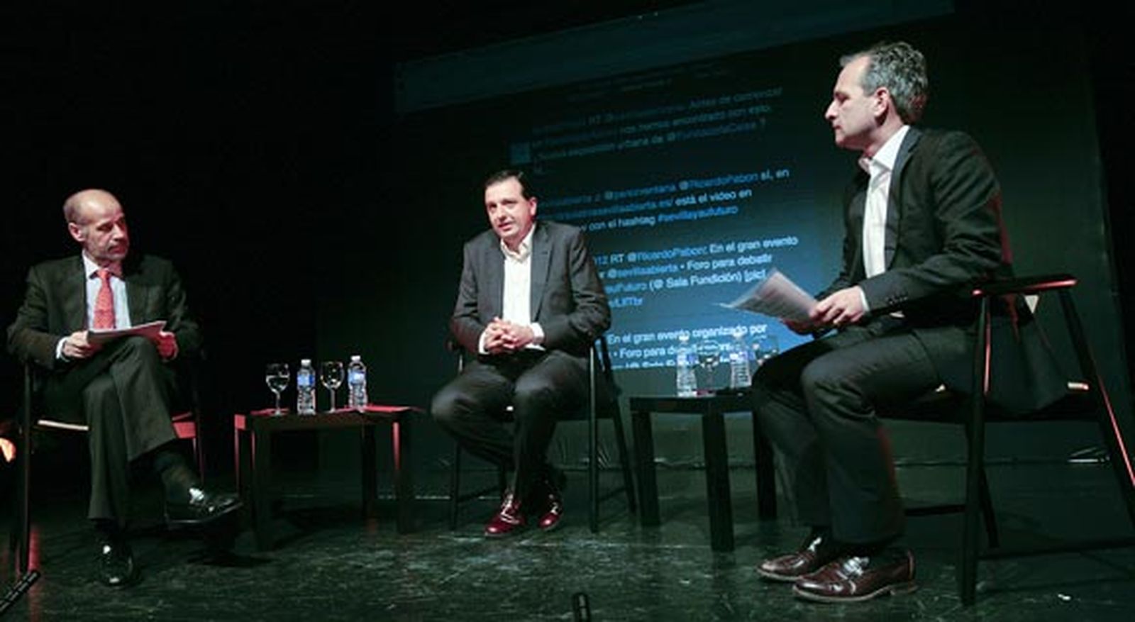 El estreno del ciclo para reflexionar sobre la Sevilla del futuro, organizado por el movimiento ciudadano Iniciativa Sevilla Abierta (ISA), fue un éxito absoluto de público de todo ámbito social y profesional que ocupó hasta el último asiento de los 135 del aforo de la sala la Fundición. El debate se retransmitió a través de internet en la red social Twitter con la etiqueta #sevillaysufuturo. Se percibían ganas y entusiasmo por escuchar las propuestas de José Domíguez Abascal, catedrático de Ingeniería y secretario general técnico de Abengoa, y de José María de Cárdenas, director de Eddea Arquitectura y Urbanismo e impulsor de la iniciativa CityThinking. El periodista Juan Luis Pavón, miembro de Iniciativa Sevilla Abierta y organizador de este debate, moderó la sesión.