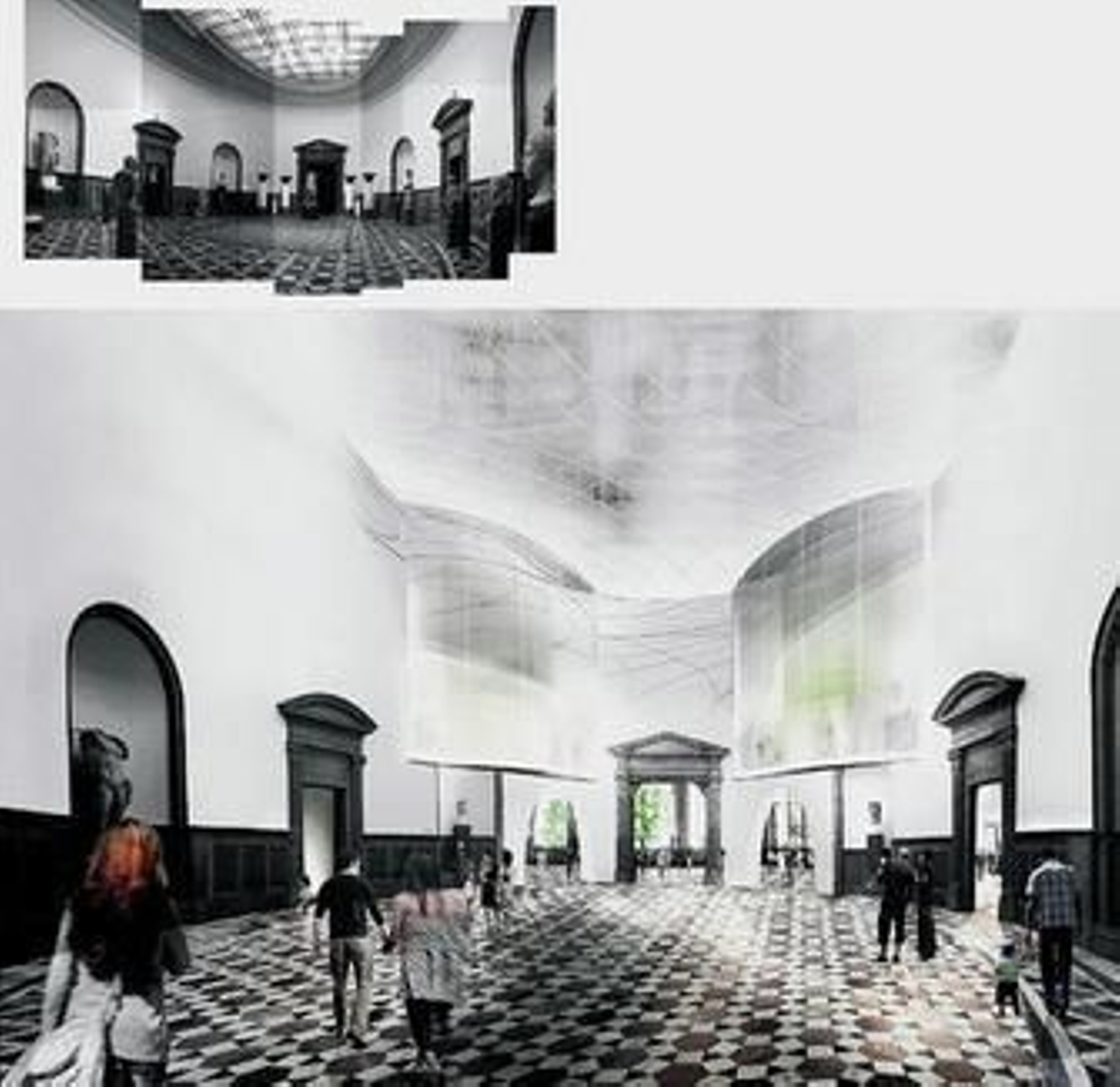 El proyecto del arquitecto sevillano, que hace unas semanas se impuso también en el concurso convocado en Barcelona para reconvertir las Atarazanas de Sevilla en un Caixa Forum, trata de devolver al edificio parte de su antigua espacialidad -hipotecada por la construcción de forjados intermedios y una entreplanta- y utilizar el vestíbulo principal -conocido como el óvalo- como elemento vertebrador de la reforma. A partir de aquí, se distribuyen los distintos usos museísticos (permanentes y temporales), cuya ordenación se ha concebido utilizando un complejo sistema de iluminación en el que se fundamenta todo el discurso expositivo. El programa de usos incluye una cafetería, tienda y un auditorio para 150 personas.