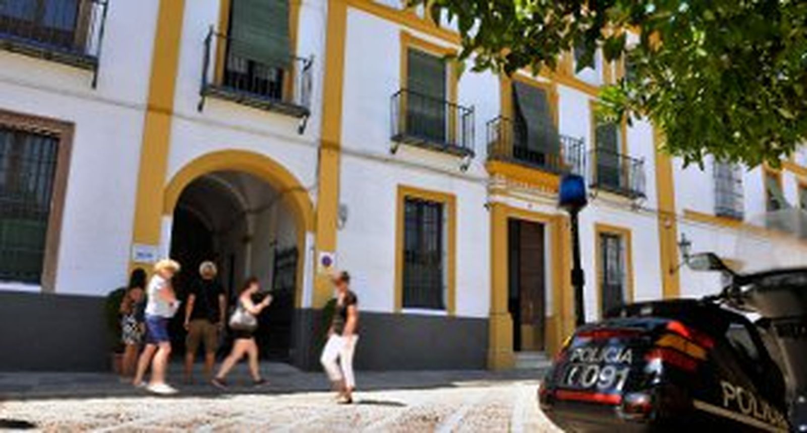 La comisaría no tiene ya ni siquiera los cuadros y adornos con los que se inauguró, ya que éstos fueron cedidos por la Jefatura Superior de Policía en Andalucía Occidental para el acto oficial de apertura. La sede policial del Patio de Banderas fue inaugurada el 22 de julio, con un retraso de un año sobre el plazo anunciado. Unas horas antes de la visita del ministro del Interior, los pintores terminaban de cubrir con pintura blanca los desconchones del pasaje de entrada al edificio. Cuando llegaron a la puerta, se acabó la pintura, el tiempo o el dinero, y el resto de la pared se quedó sin pintar. Los encargados de protocolo, hábilmente, taparon el problema a la vista colocando dos carteles publicitarios, uno de la Policía Nacional y otro de la Local. Pero el ministro se fue y los carteles se retiraron, dejando de nuevo las pequeñas grietas a la vista de cualquier visitante que se adentrara en la bóveda de acceso a la comisaría.