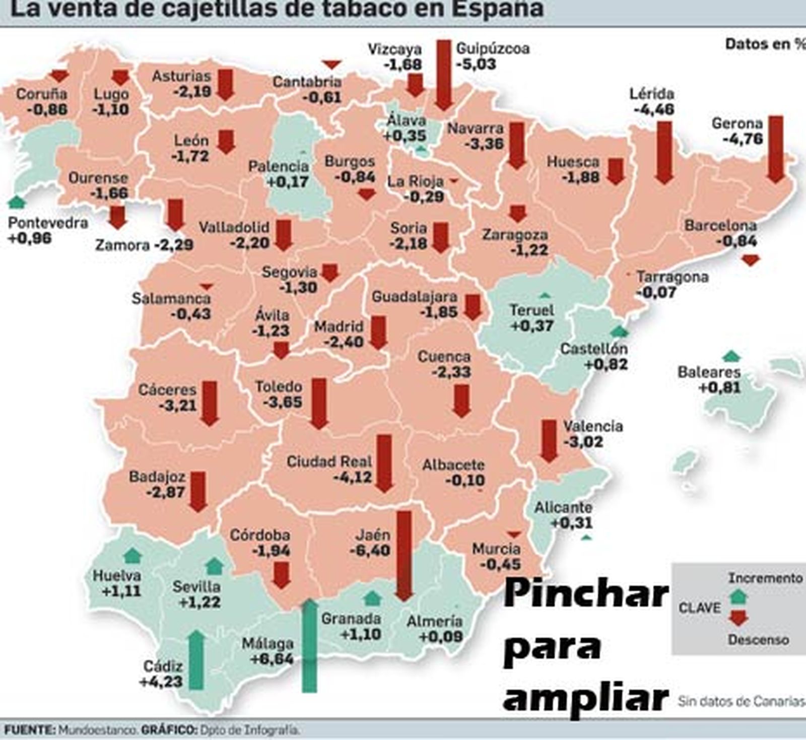 El delegado especial de la Agencia Tributaria en Andalucía, Alberto García Valera, atribuyó recientemente este repunte de la venta legal de tabaco a la presión policial y fiscal sobre Gibraltar, que se ha incrementado en el último año. Prueba de ello es que no sólo la venta legal ha subido en Sevila, sino también en otras provincias próximas y situadas en el área de influencia del Campo de Gibraltar. Así, si en Sevilla la subida ha sido del 1,22%, en Cádiz se ha elevado hasta el 4,23% y en Málaga ha crecido aún más, en torno al 6,64%. También han subido las ventas en las provincias de Huelva y Granada. Estos datos corresponden al periodo comprendido entre los meses de enero y agosto de este año, en comparación con el mismo periodo del ejercicio anterior.