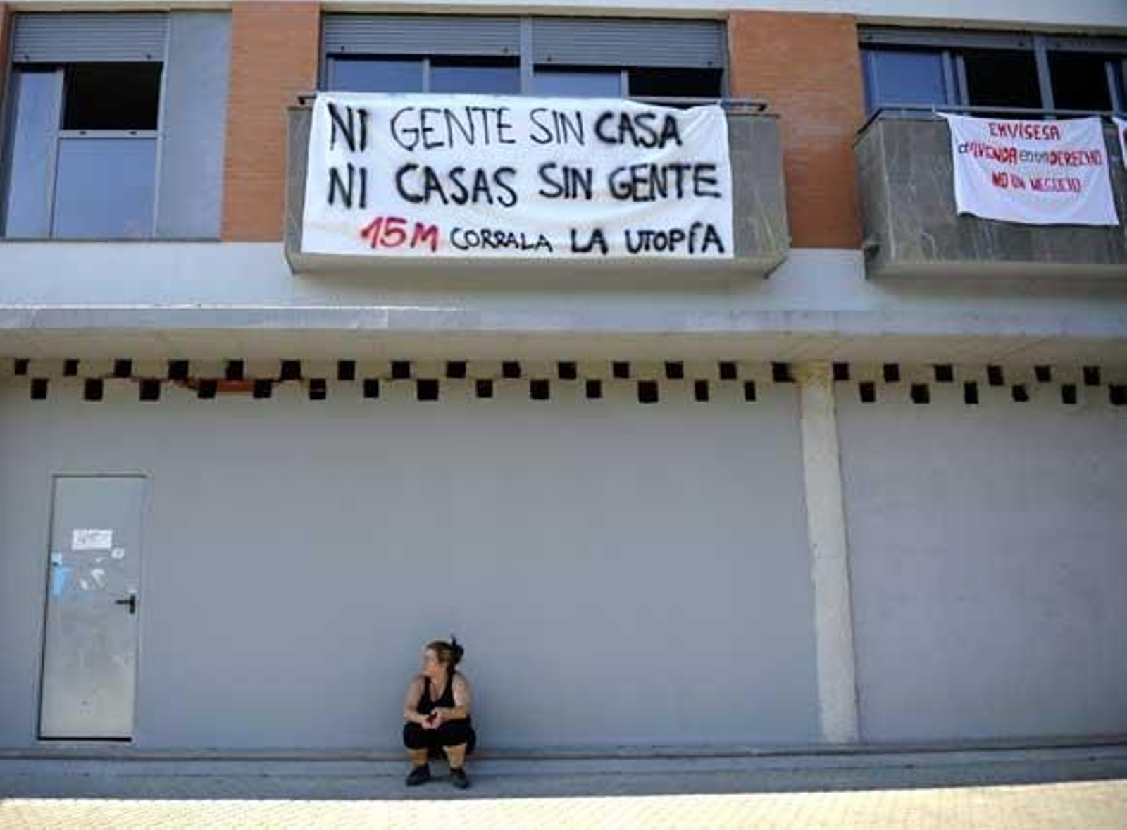 Más de una treintena de 'indignadas' familias han ocupado un edificio de cuatro plantas e intentan convertirse en un ejemplo de un país donde un millón de viviendas están vacías y los desalojos continúan creciendo.